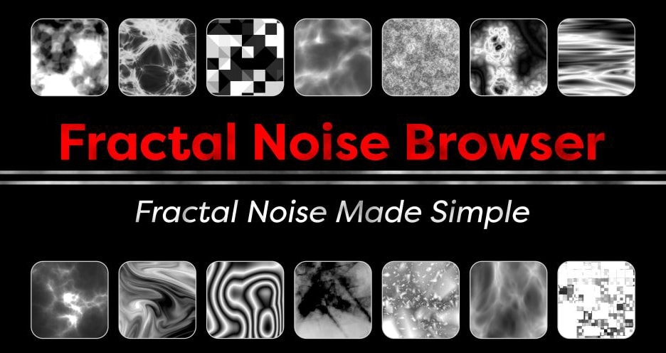 Fractal Noise Browser 是一款为 After Effects 设计的扩展脚本,用来简化并丰富分形噪波效果的创作流程。它将原本参数众多、难以预览的 Fractal Noise(分形噪波)和Turbulent Noise(湍流噪波)效果通过可视化缩略图和动态预览方式呈现,让你像浏览素材库一样快速选择效果,而不用手动调参。