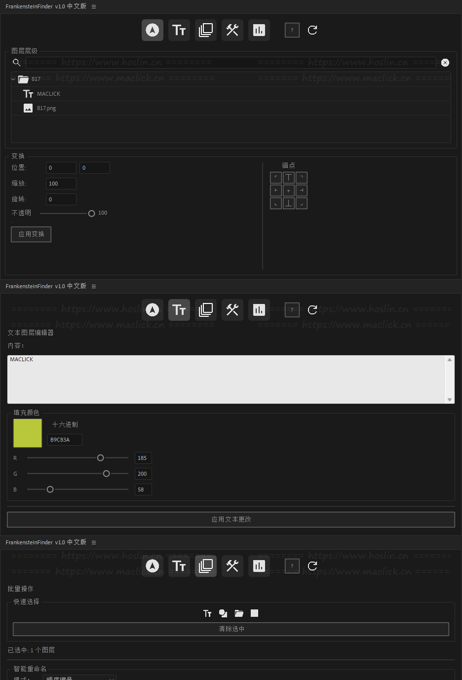 - 将一个图层的位置、缩放、旋转和不透明度复制到多个图层。