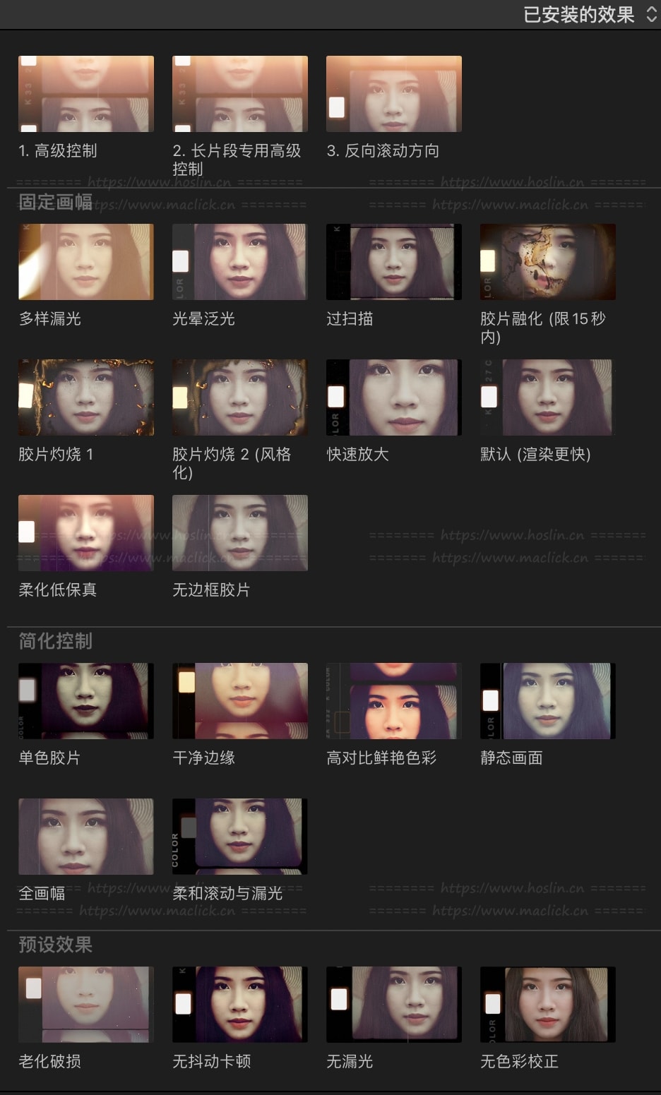 8mm Film Strip 2.0 是一套为 Final Cut Pro 设计的胶片质感效果插件,可以让您在数字视频中重现经典 8mm 胶片外观的视觉风格。它提供多种预设,包括燃烧胶片、胶片熔化、过曝、光晕与快速缩放等效果,可以让视频画面呈现出明显的颗粒、划痕、边框等复古胶片特色。每个模板都包含高级控制和预设,提供初始设置和可调整的参数。从色彩鲜艳、清晰的图像到褪色破损的胶片,剪辑师可以修改每个元素的外观,包括帧、齿孔和键码。版本 2.0 在原有基础上新增了 10 款预设,增强了真实感和创意表现力。通过简便的拖放和参数调整,这款插件能快速为项目增添怀旧风格的电影质感,非常适合用于短片、音乐视频或纪念影像的视觉设计。