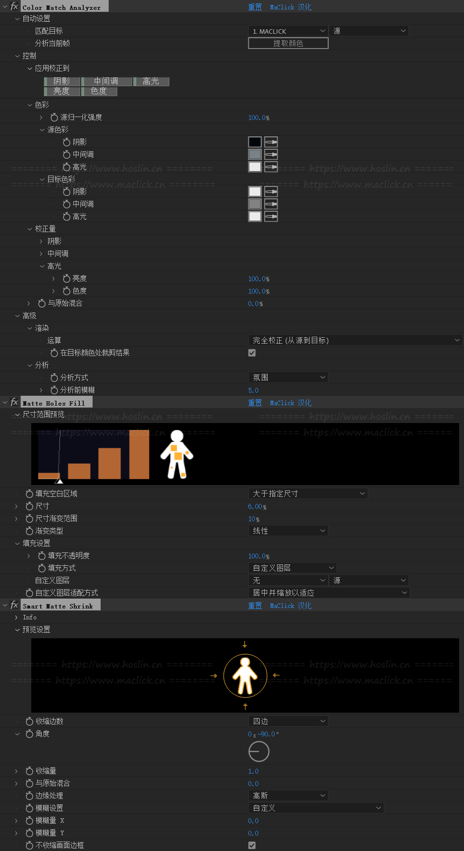 • Fill Matte Holes 填补遮罩孔洞:无需手动抠像或遮罩,即可修复抠像后遮罩中残留的孔洞。通过淡入淡出范围,对尺寸阈值进行精细控制,避免闪烁。