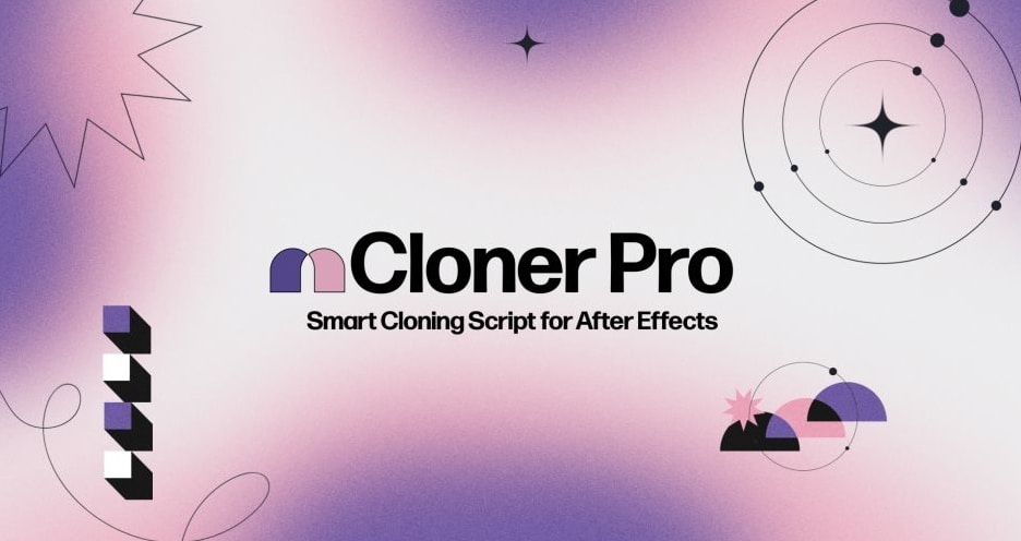 mCloner Pro 是一款专为 After Effects 设计的图层克隆与阵列动画工具,能够快速生成并控制大量图层副本,帮助用户高效制作复杂的动态图形效果。通过简单设置,它可以将一个或多个图层瞬间复制成大量“克隆对象”,并按照线性、网格、环形或路径等方式自动分布,实现整齐的阵列布局和动态动画。mCloner Pro采用实时更新机制,当用户修改源图层或参数时,所有克隆对象都会即时同步更新,大幅减少重复调整的时间。它还提供类似3D软件中的效果控制器系统,可根据距离、位置或时间为克隆对象添加延迟、波动、随机变化等动画,使复杂动效无需逐层设置关键帧即可完成。