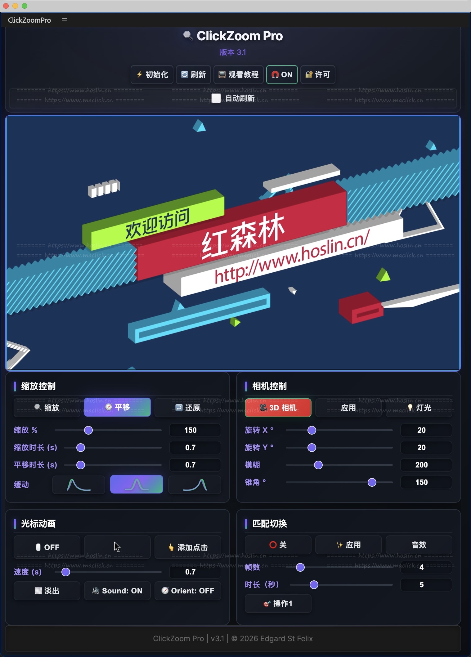 - 相机控制:一键构建现成的 3D 相机装置,添加旋转、光照和模糊效果,打造电影般的视觉效果。
