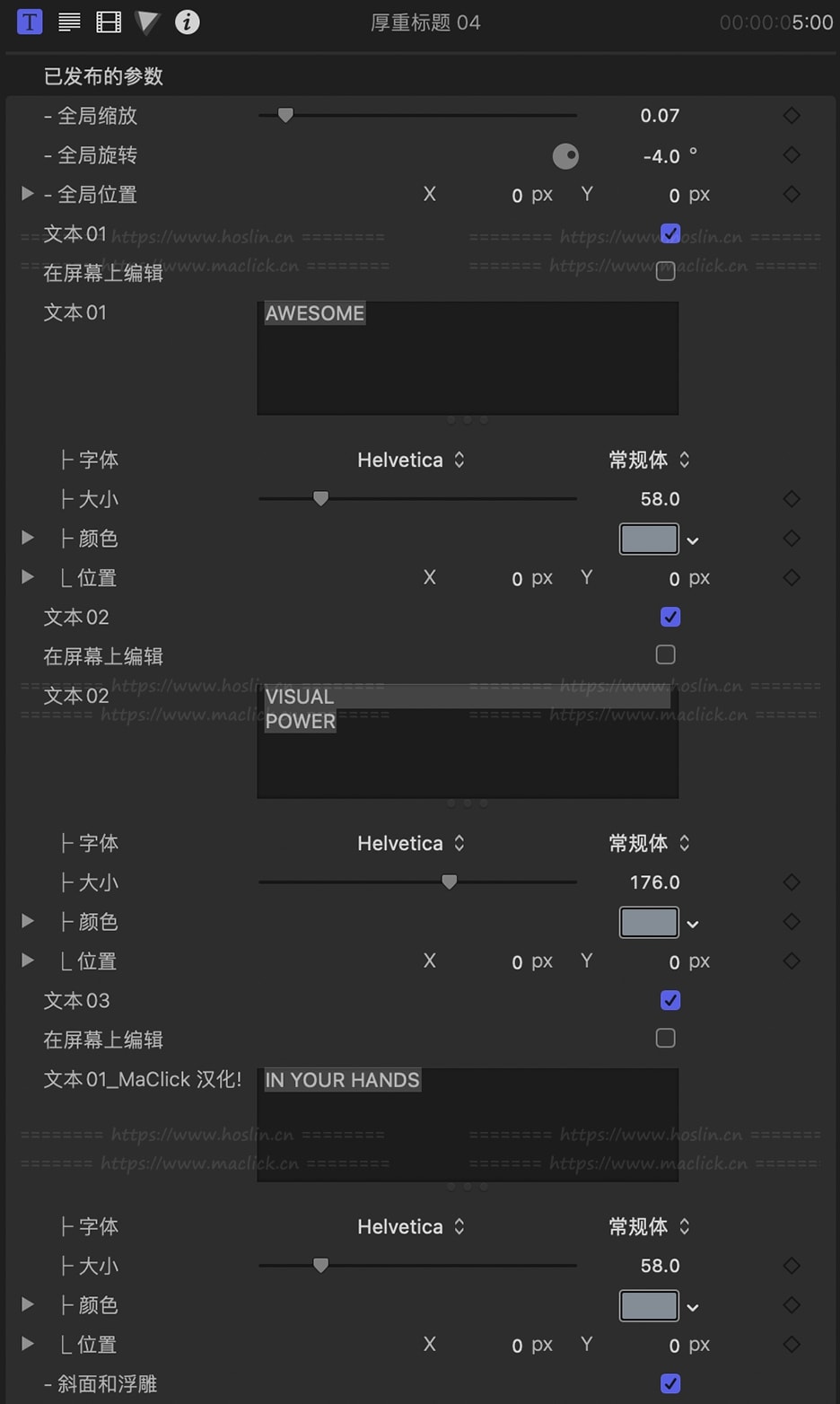 使用 Metal Forge 插件为标题和徽标添加高级金属特效。创建各种具有超逼真金属纹理的图形,并可完全控制合成的每个细节。专为 Final Cut Pro 设计。轻松切换银色或金色金属质感,通过斜面和浮雕、凹凸纹理、挤压、闪光、自定义背景和环境阴影控制,精细调整 3D 细节。这款高端插件旨在打造震撼夺目的片头序列。