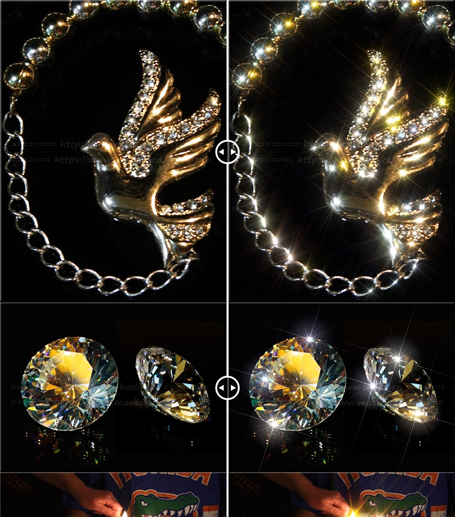 使用插件提供的各种选项,可以选择在图像亮点上创建星芒效果。插件有七种星星效果:标准星光,星光爆发,过量星光,好莱坞星光,北极星光,矢量星和宗教十字架。非常好用~超级炫酷~