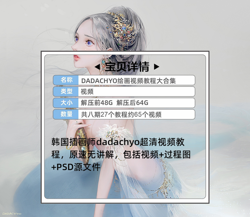 这套DADACHYO插画教程深受大家的喜爱,笔画细腻,一看就让人挪不开眼!文件大小:64G左右