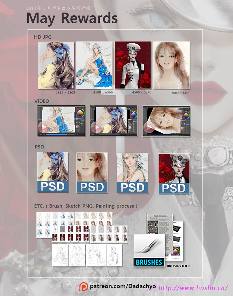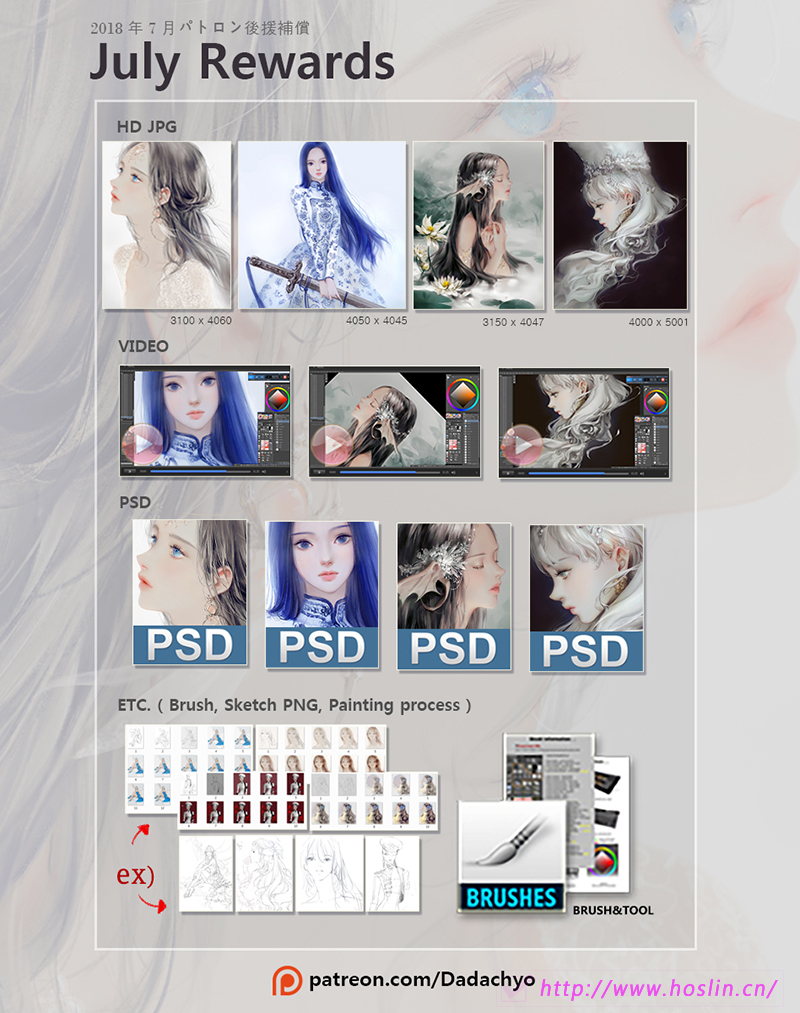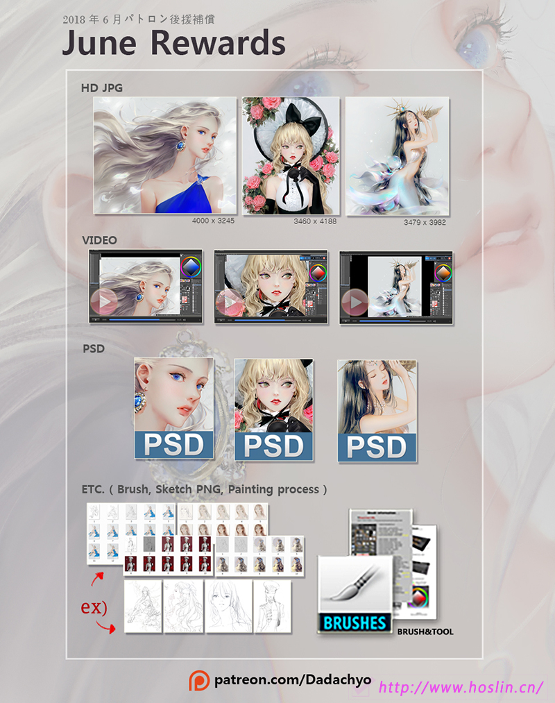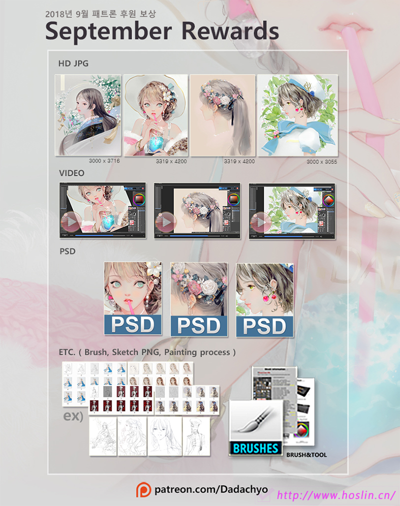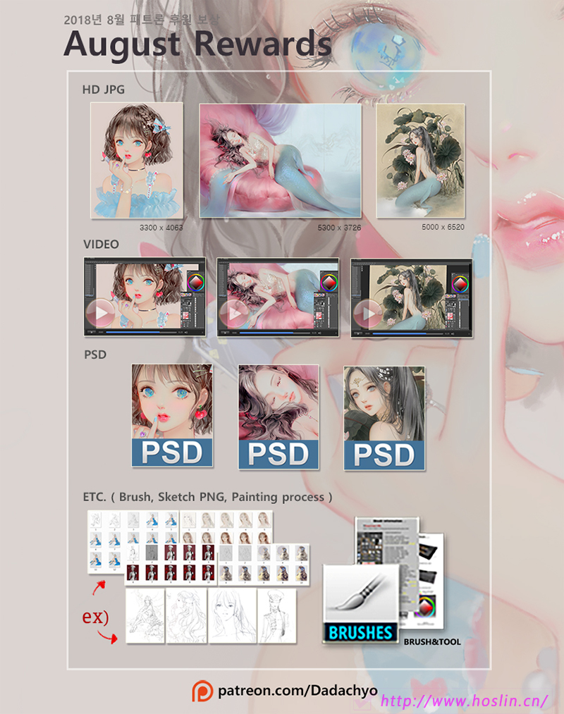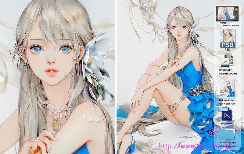 韩国画师DADACHYO-达达踔。“DDC”2012年开始画画,喜欢画美女、花、宝石、装饰、人鱼等什么漂亮的。笔下以女性角色为主,质感的表达方式细腻,作品给人感觉仙气逼人。