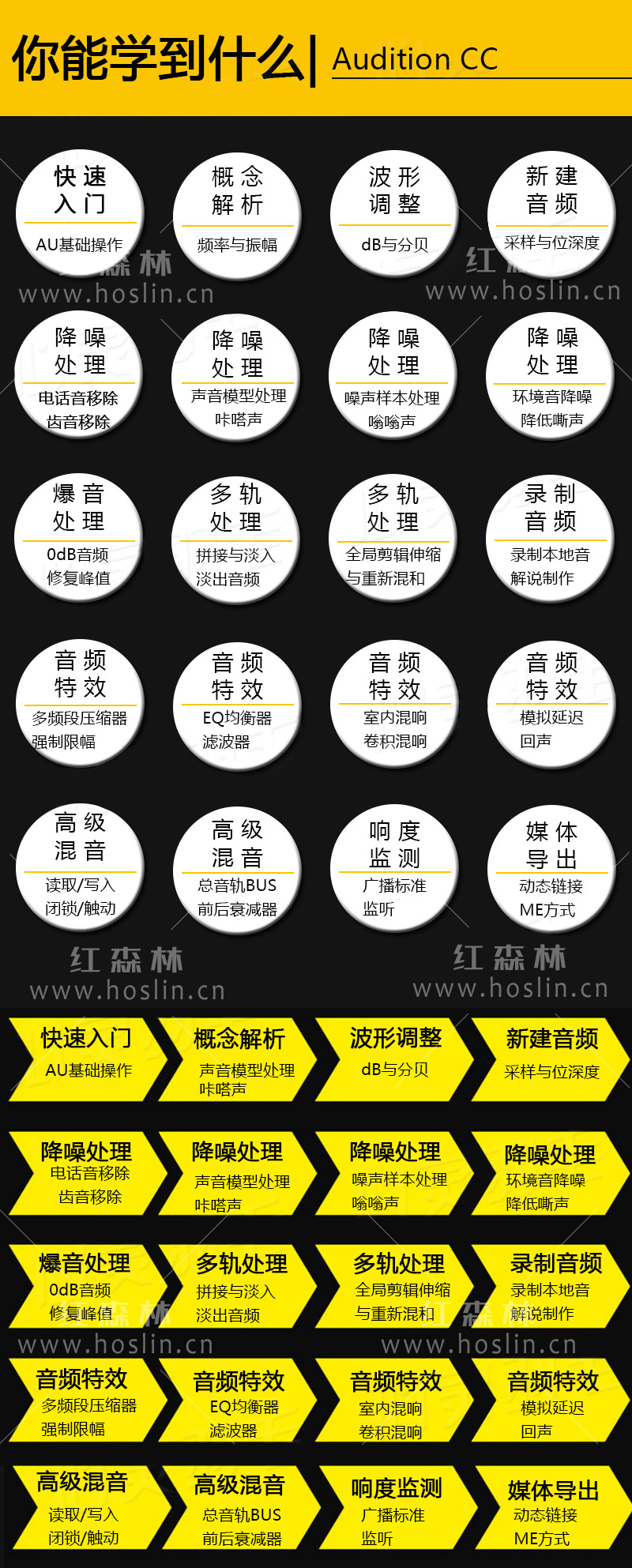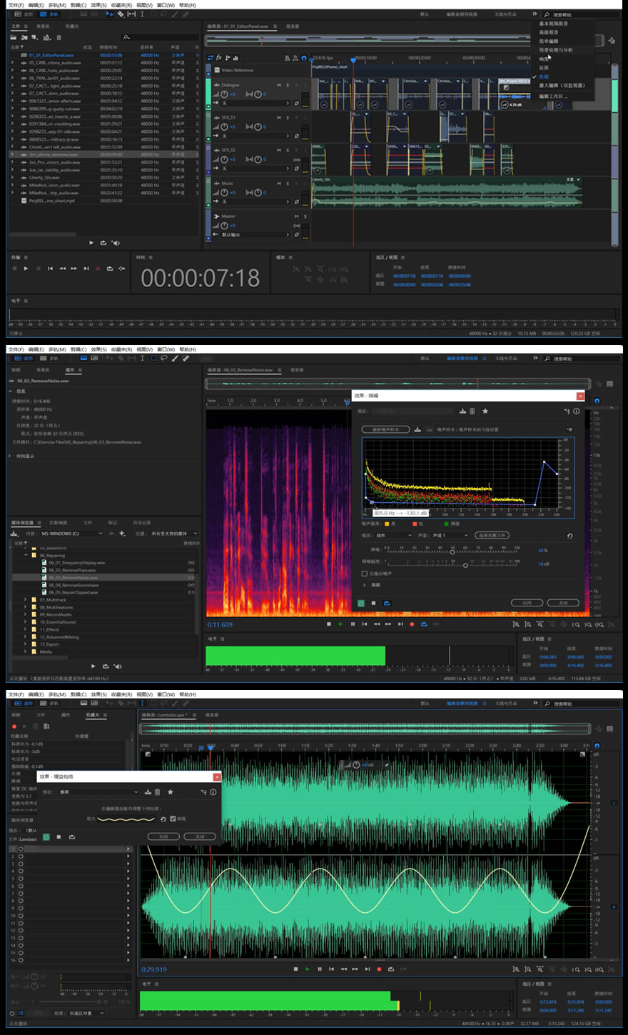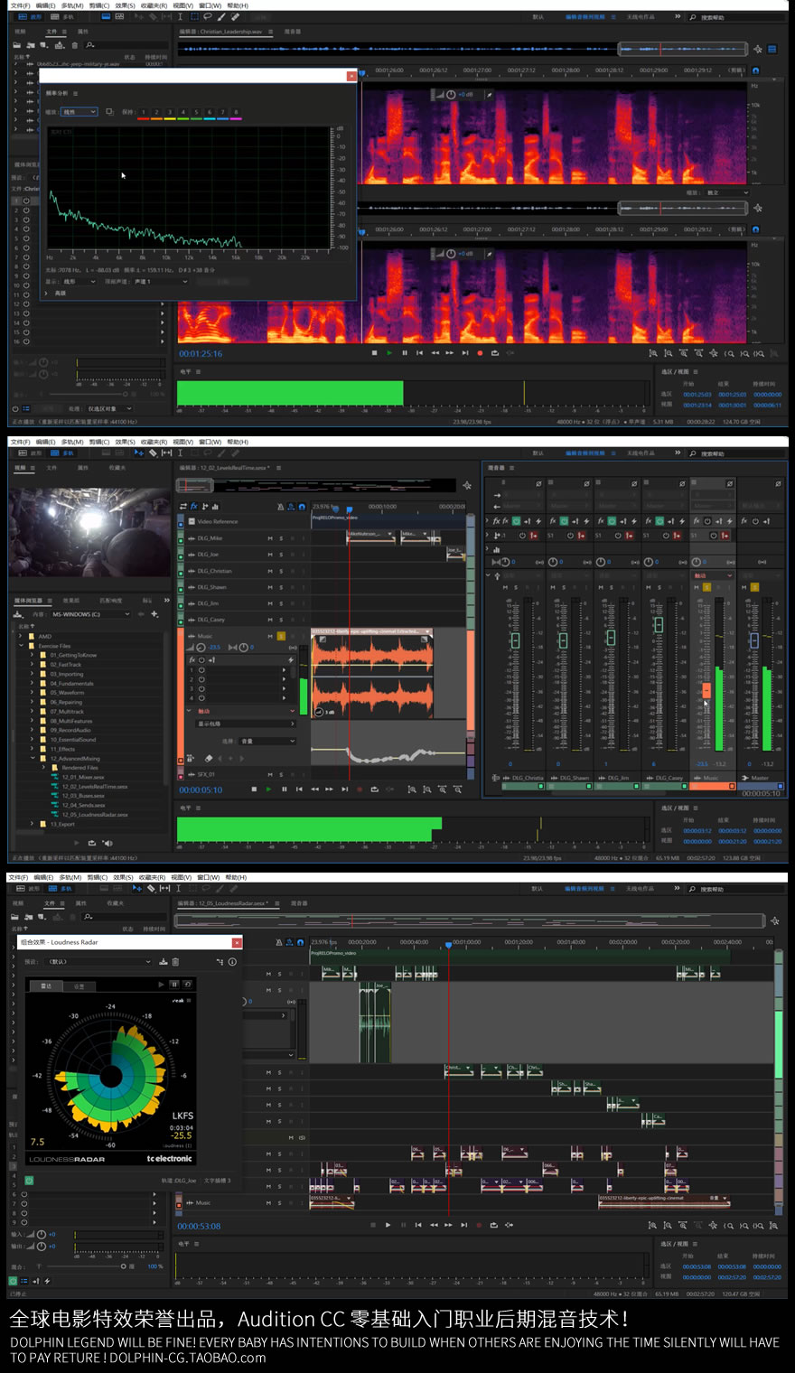 本套视频教程通俗易懂,零基础也能入门,从Audition软件界面一步步讲起。如果你想自己处理音频文件,无论是降噪,混音,这套教程都有讲解。