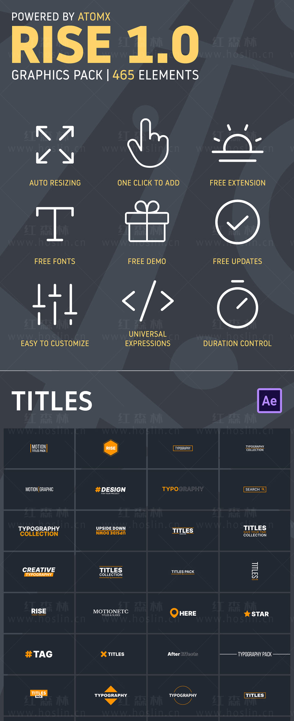 Rise Graphics Pack 1.0这套预设包提供了465种动画:如标题、大文字、彩色标题、图文排版动画、竖版样式、字幕条、彩色渐变图形背景、图形转场、创意标题、社交媒体小动画等。使用AtomX脚本扩展使用预设,可视化效果,只需单击一下,即可使用预设,可随意修改文字,颜色等 。具有任何经验的用户都可以使用Rise Graphics Pack 1.0,因为它易于使用。465个动画模板将节省您的时间,并帮助您进行视频制作。