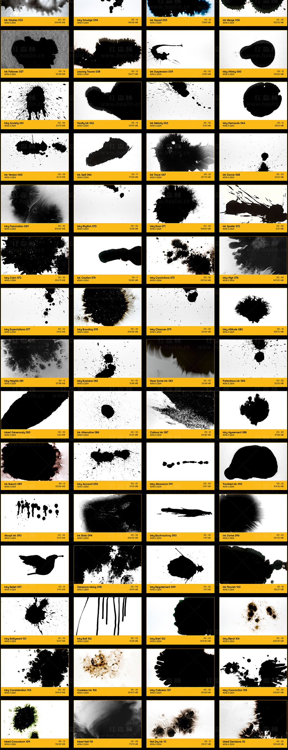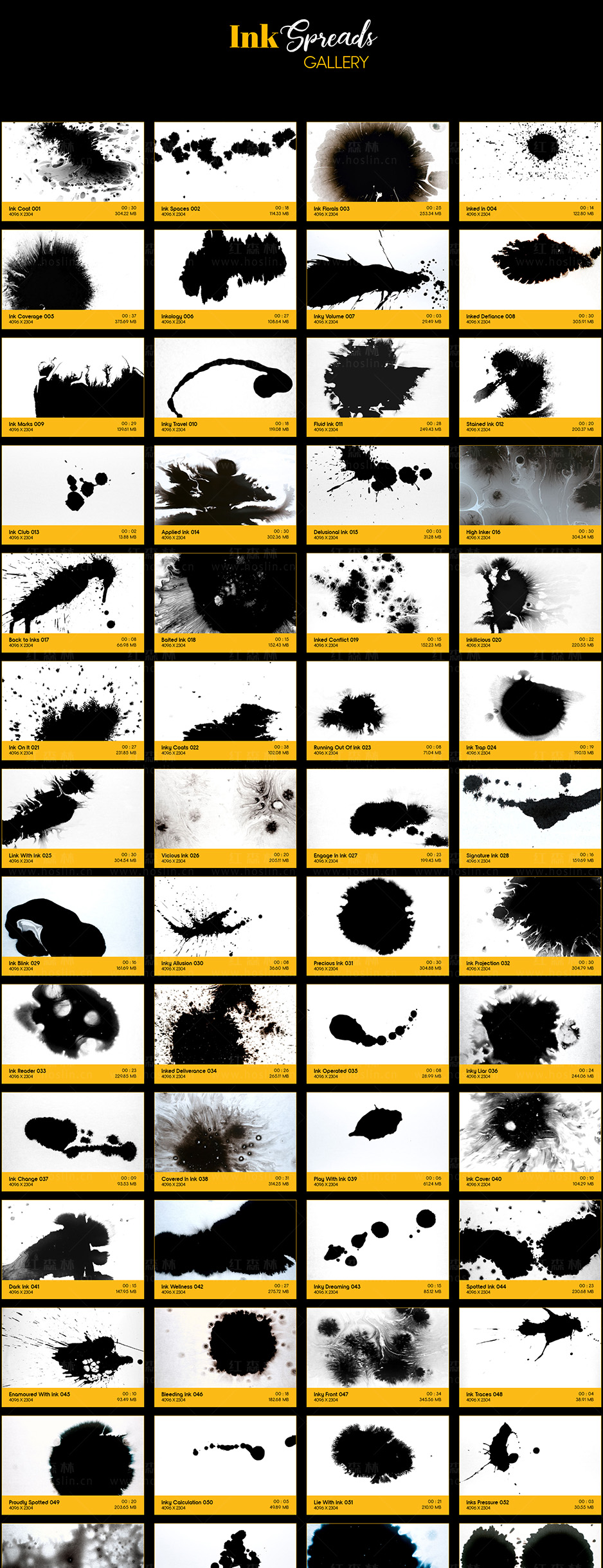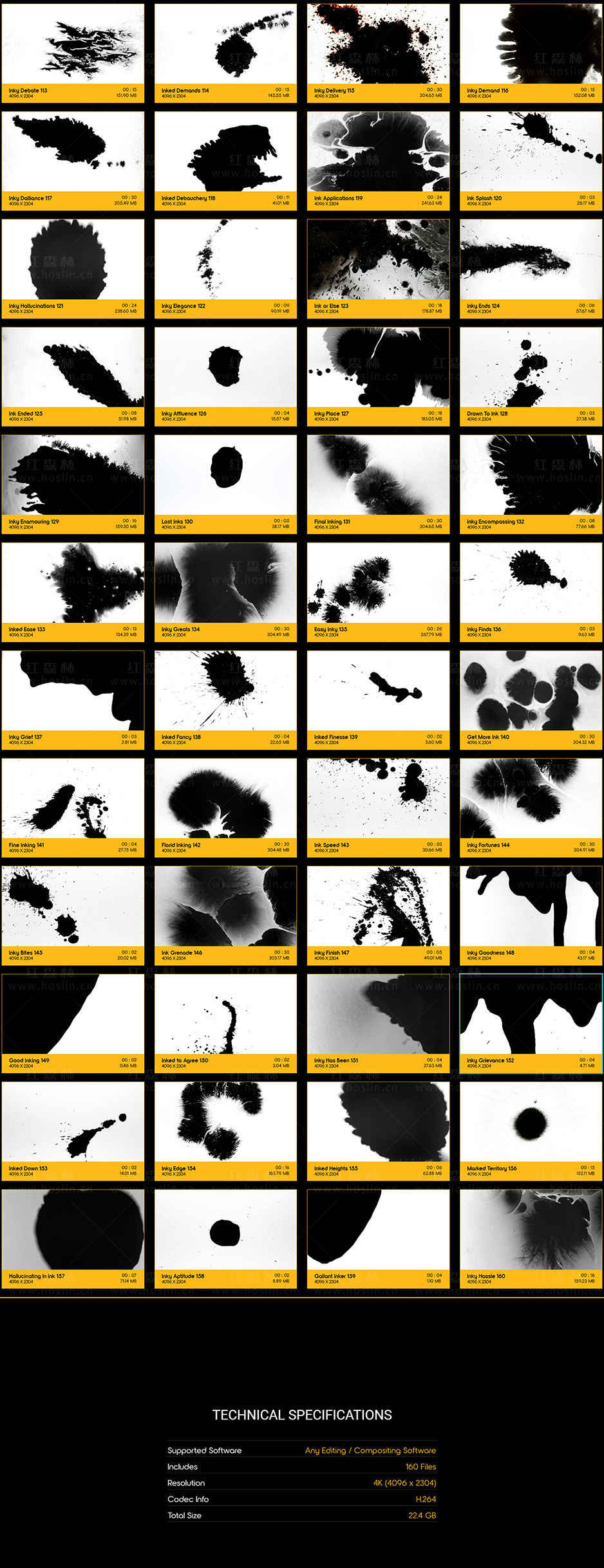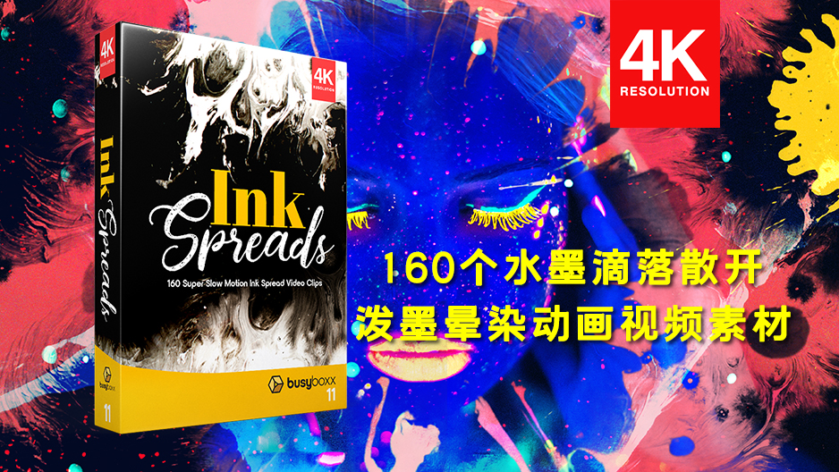 Ink Spread 提供160个个水墨滴落散开泼墨晕染动画4K视频素材,适用于VFX特效合成、转场、背景中使用。分辨率:4096*2304,4K高清;无透明通道(可修改混合模式去黑底透明叠加使用)。