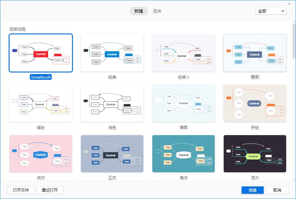 XMind 拥有丰富的模版,可快速上手:XMind 2020拥有非常丰富的模版可以直接套用,不会花费你太多的时间就能制作出一张效果相当不错的作品,无论工作需要还是学习需求,用它制作脑图都有很好的效率。