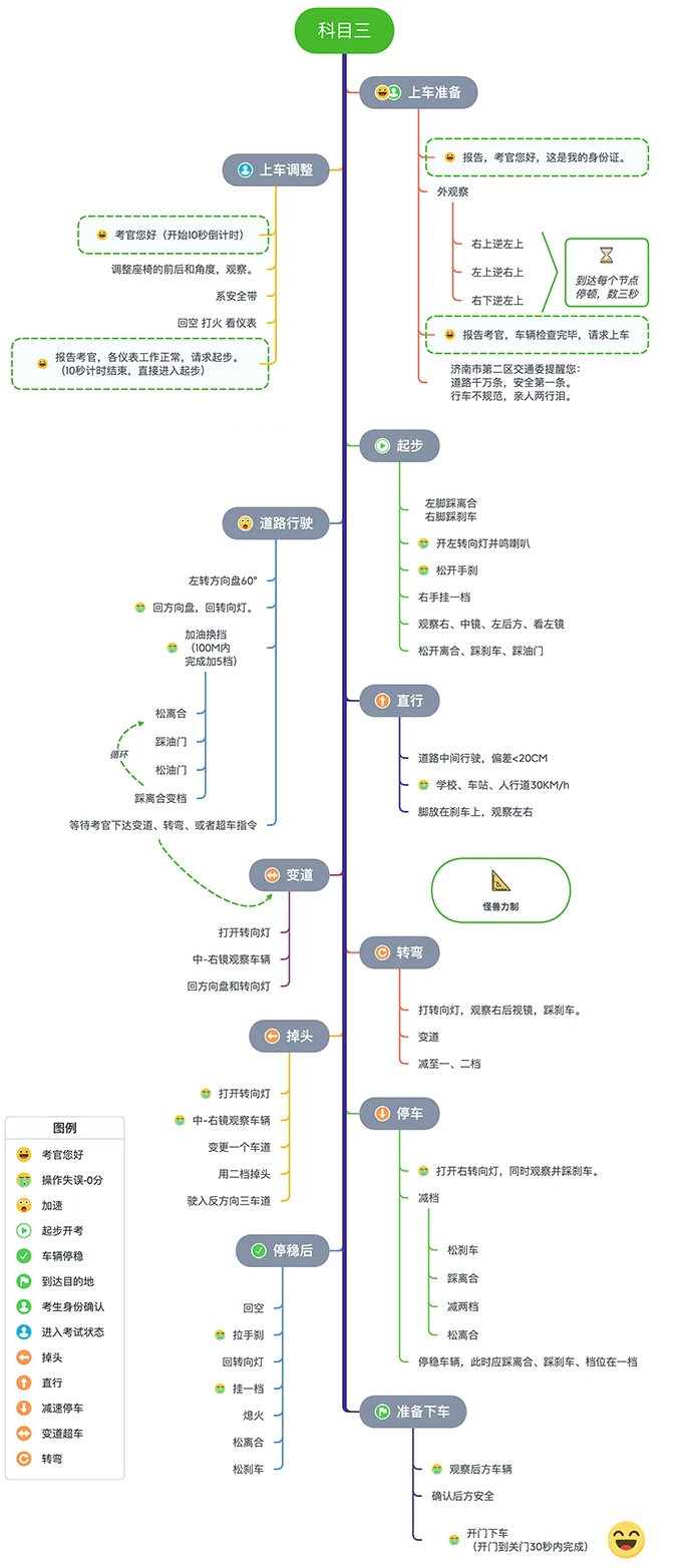 下面是一些使用 XMind 制作的优秀的思维导图制作例子,比如这个考驾照的科目三教程,可以非常直观、一目了然地把全部知识点概括起来,只用一张图就能完成知识点的复习。而且图片看起来也很漂亮很专业。