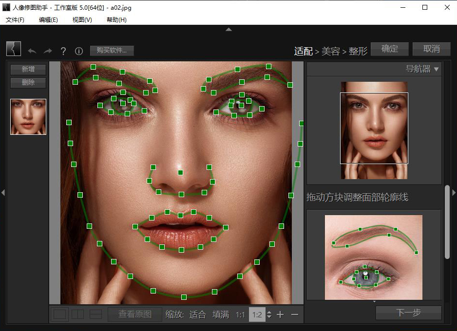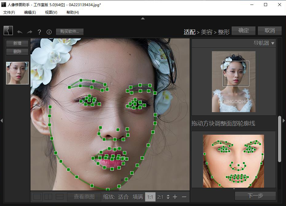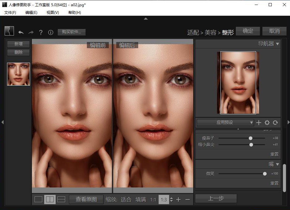 - 面部五官整形:只需滑动滑块,即可轻松调整脸部、眼睛、鼻子及嘴巴的形状。瘦脸美鼻,放大眼睛,让人像看起来更美。