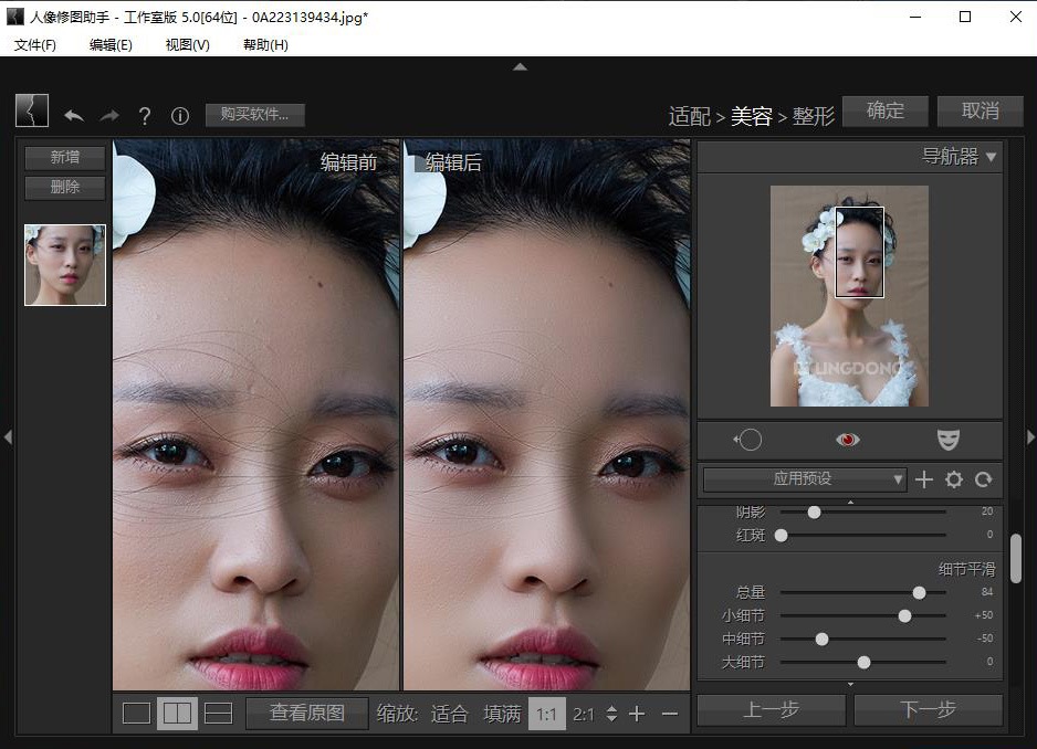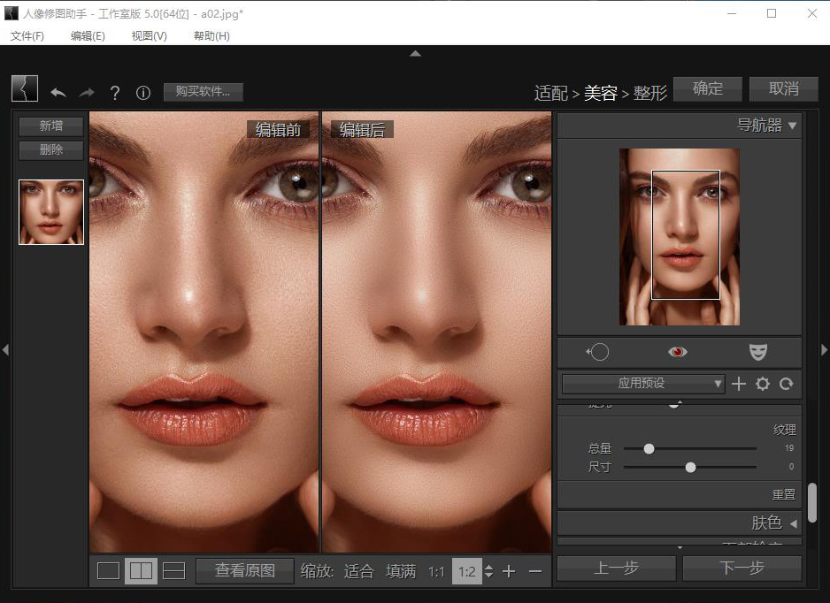 - 去除面部斑点瑕:人像修图助手能够快速去痘、痣等面部瑕疵,显皱纹、色斑,抚平眼袋,紧致毛孔,同时适当保留肌肤纹理以保证整后的人像照片看上去自然真实