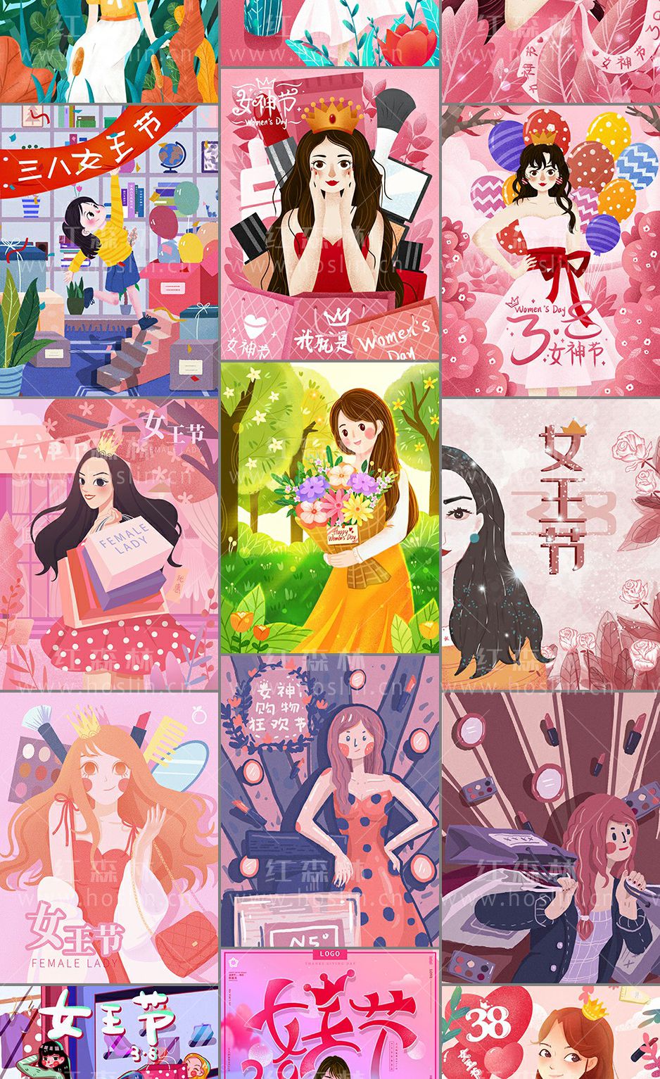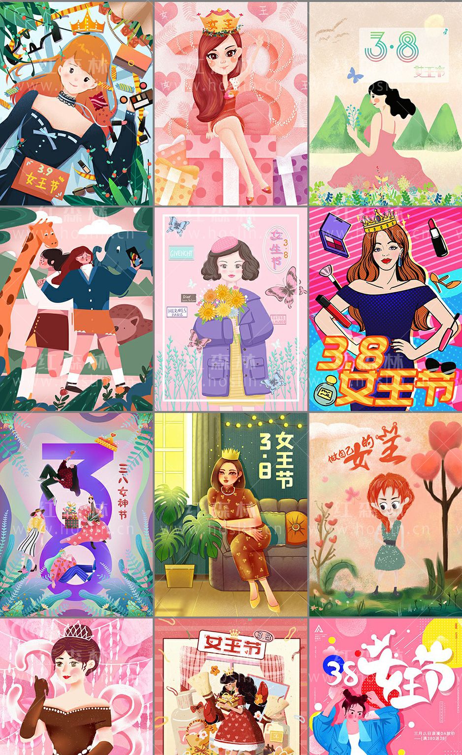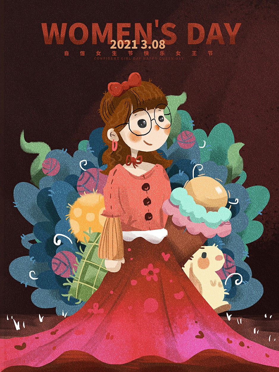 38妇女节手绘插画海报模板
