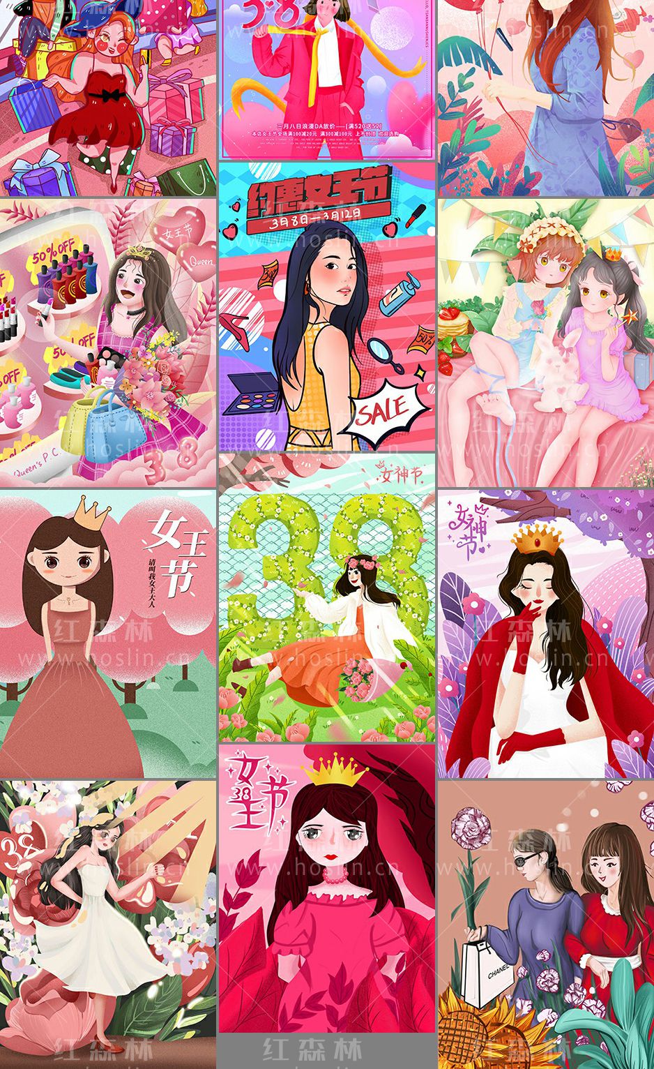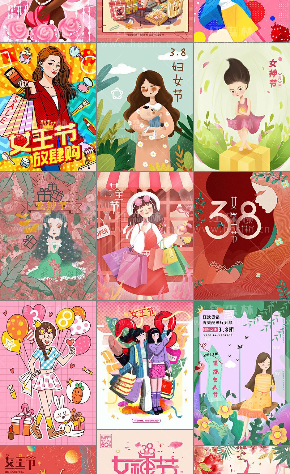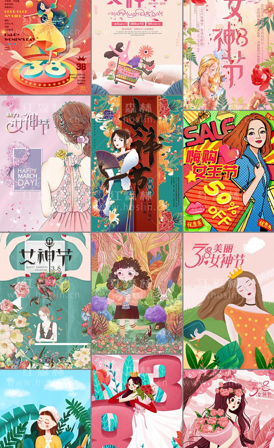 38妇女节手绘插画海报模板
