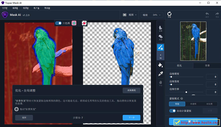 Topaz Mask AI 让你从头到尾在几分钟内就可以获得精确的蒙版,完美的抠像。手动创建复杂的选择并对其进行完善几乎总是比预期花费更长的时间。认识Topaz Mask AI。借助我们直观的机器学习技术和trimap技术,Mask AI可让您在创纪录的时间内创建棘手的蒙版。