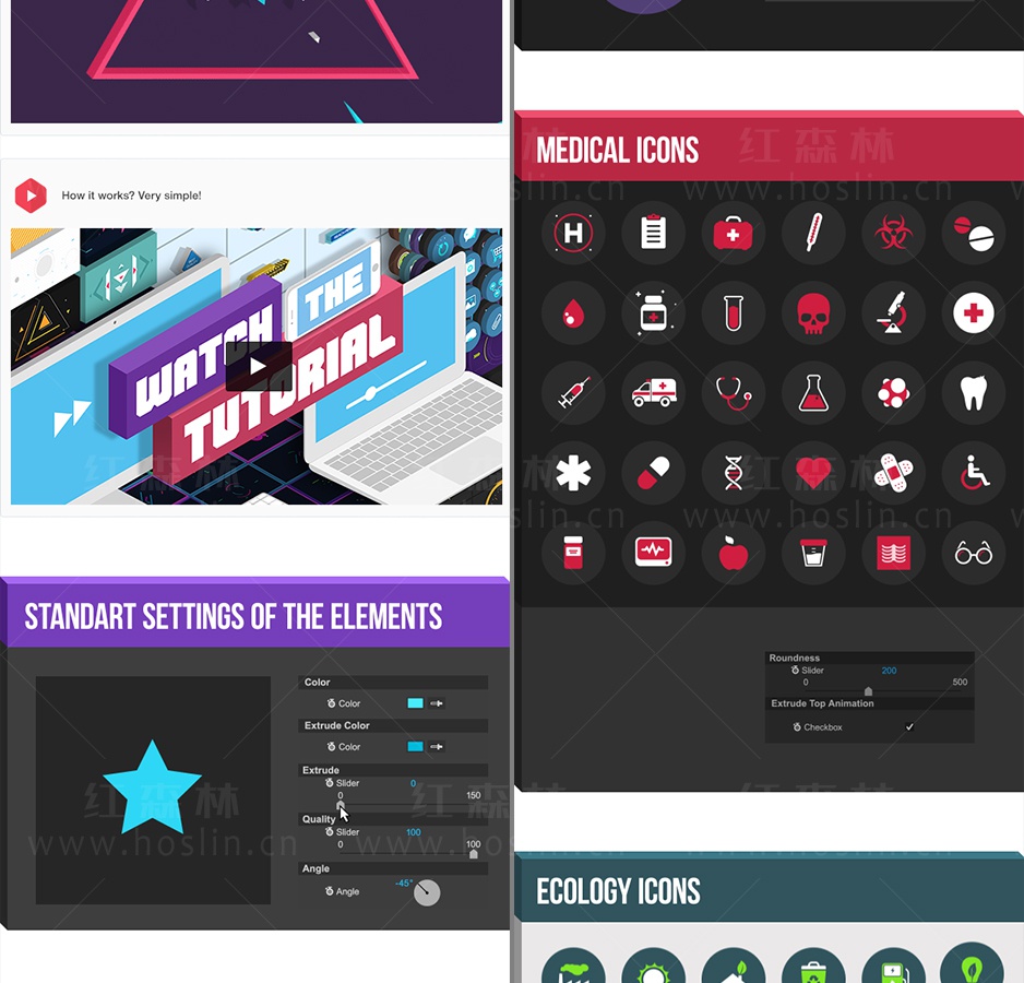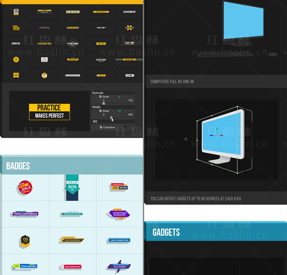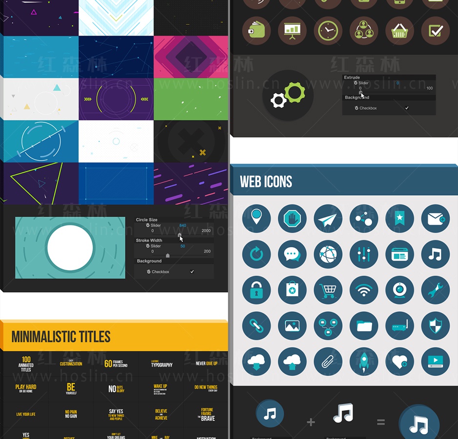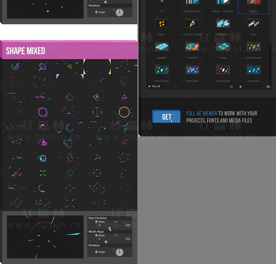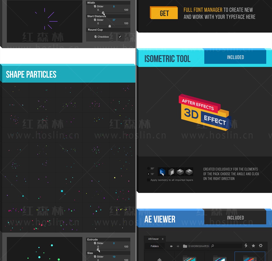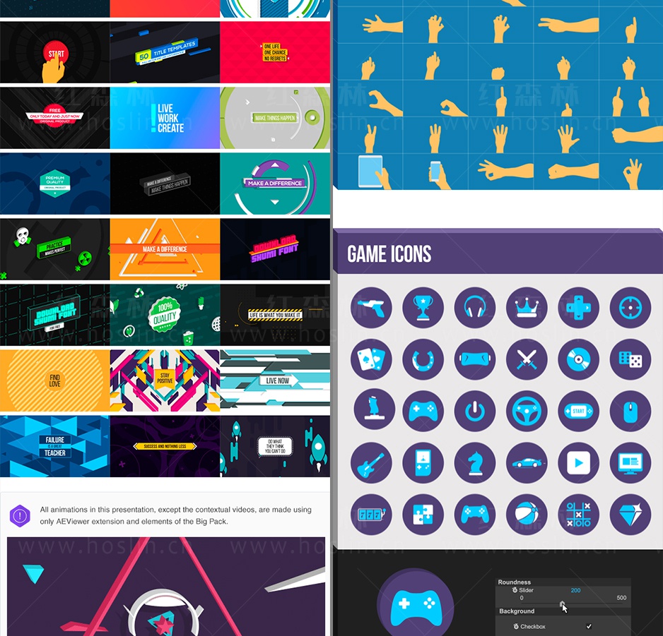这是一套非常棒的AE脚本,可以快速生成各种MG动画元素,约1850种元素动画,还可以修改元素的颜色,大小,旋转,三维效果,动画等属性,双击即可加载使用。包含详细的脚本安装和视频使用视频教程。