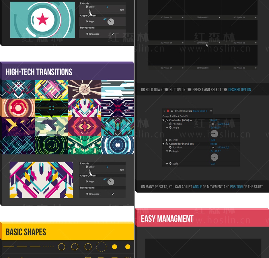 • 增加50个图形动画片头预设 (最低要AE2019使用)