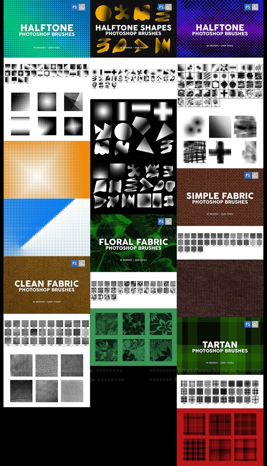 - 120个纺织Photoshop笔刷(〜2500像素,纺织品,格子呢,布,织物)