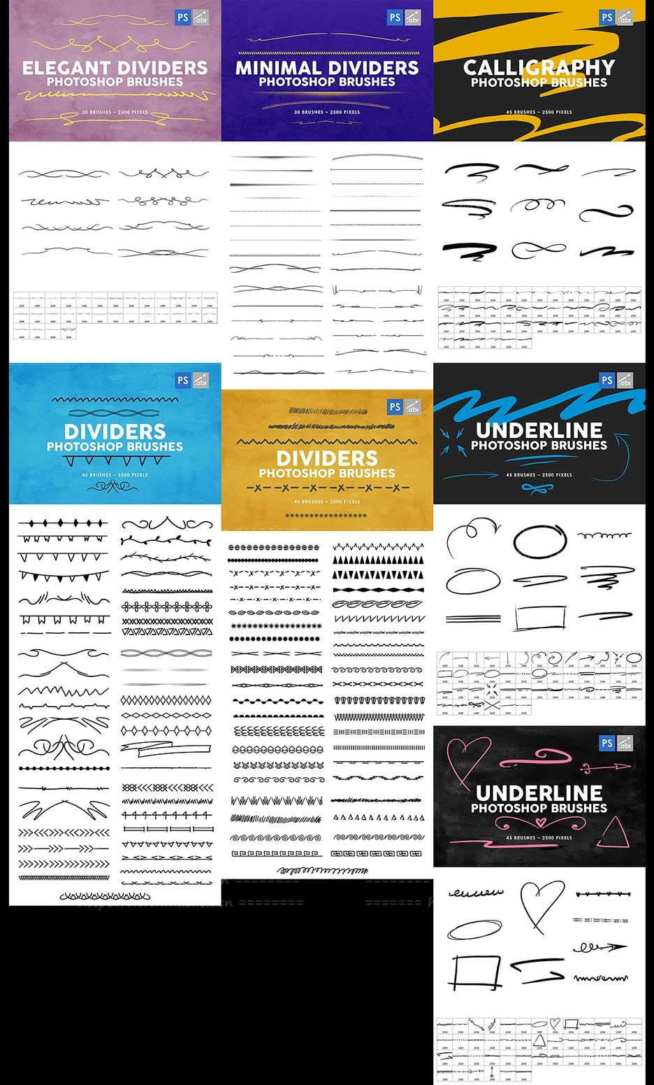 - 285个下划线Photoshop笔刷(〜2500像素,下划线,分隔线,书法)