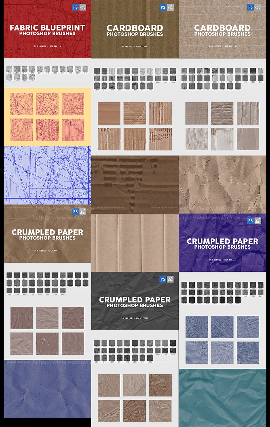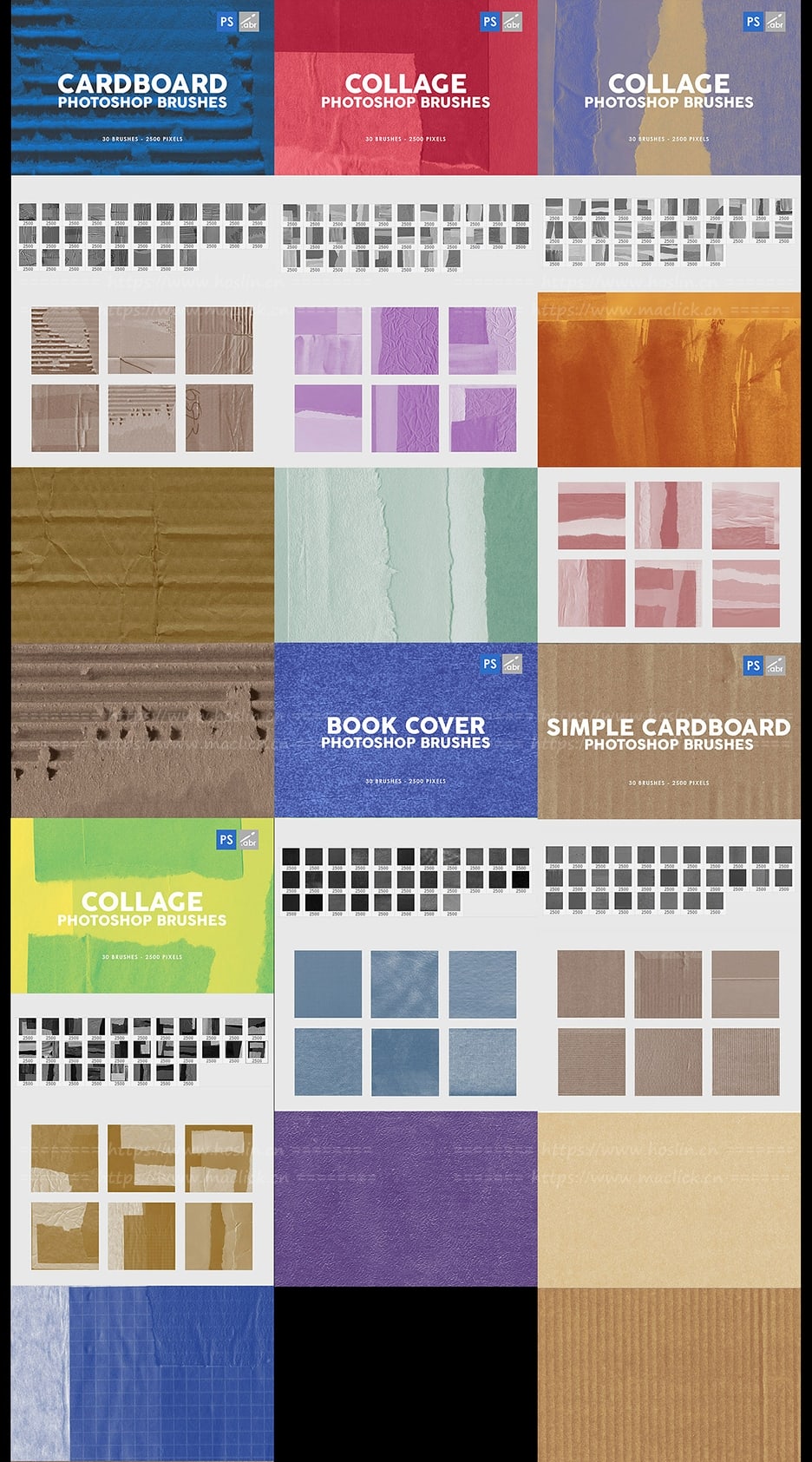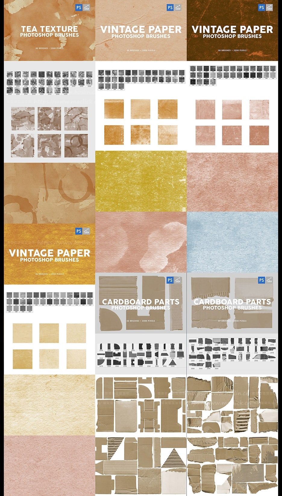 - 534张纸质Photoshop笔刷(〜2500像素,纸板,老式和清洁纸,拼贴画)