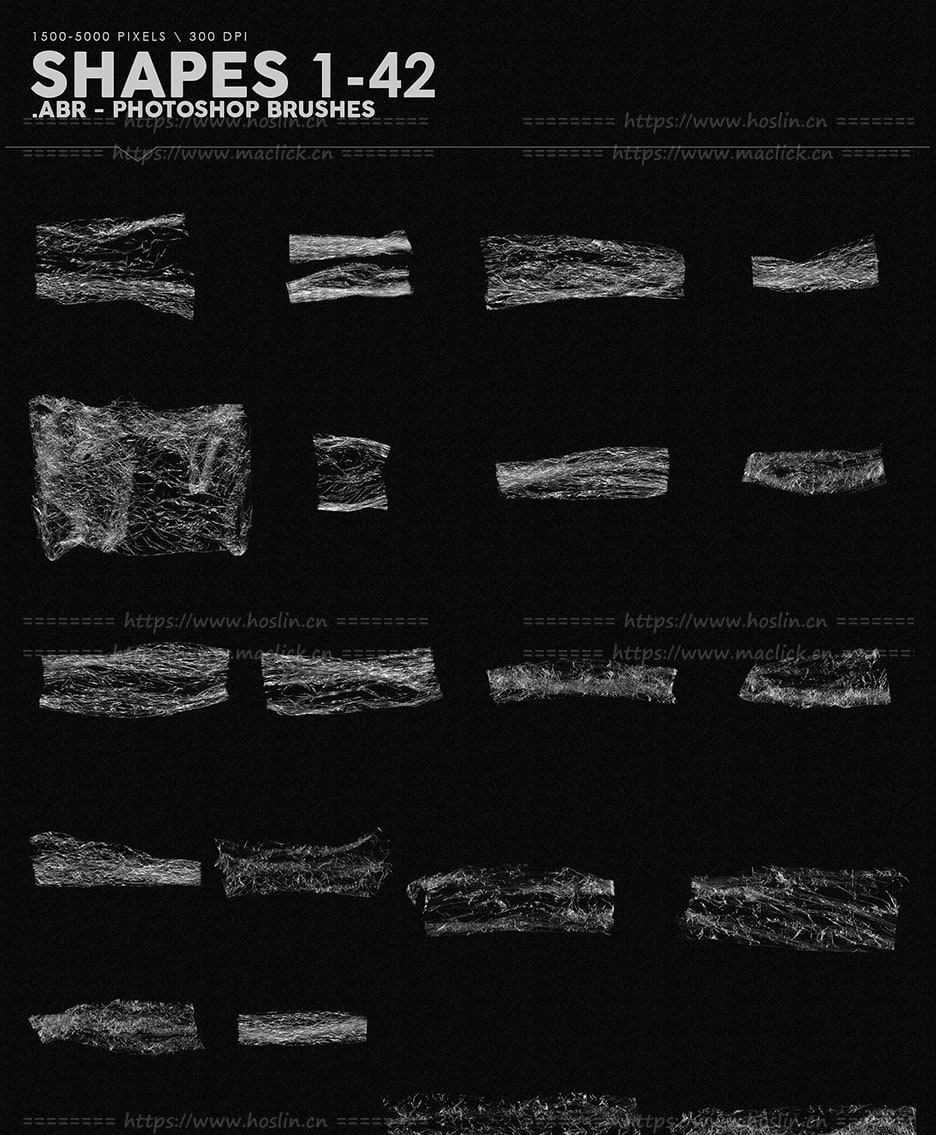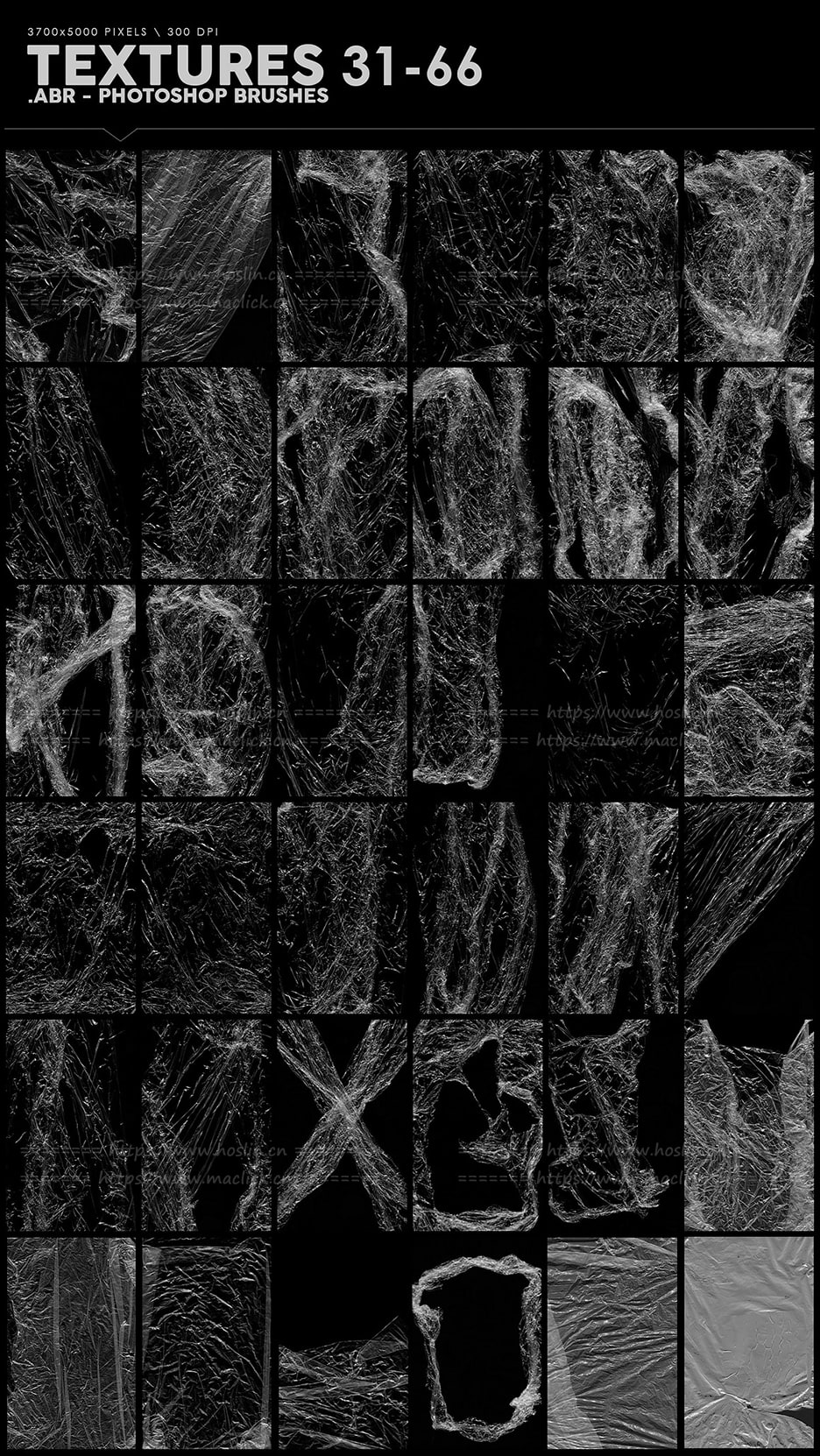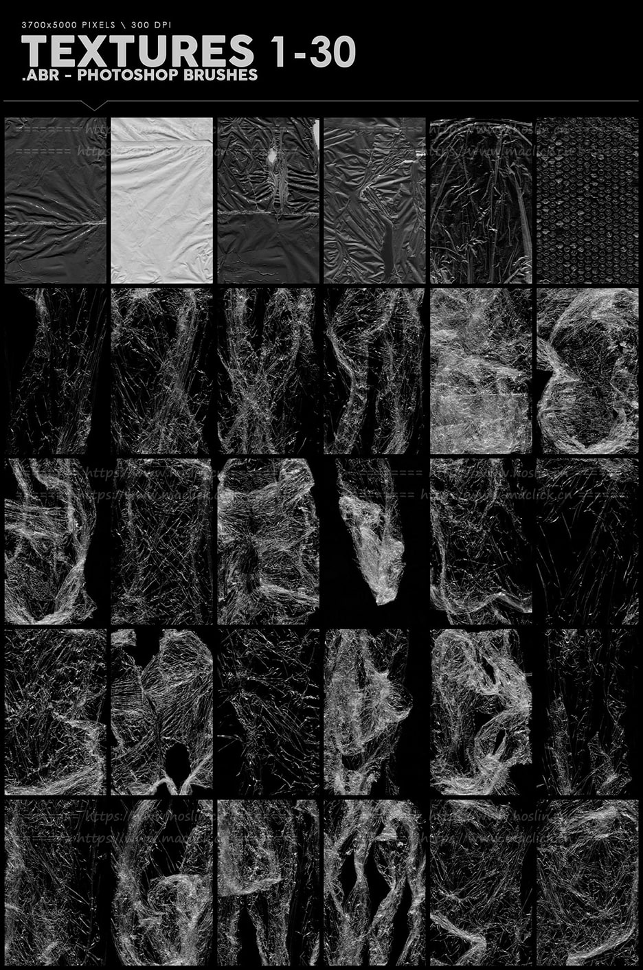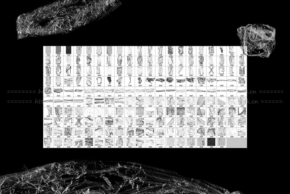 关于产品:198支用于Photoshop CS2-CS3- CS4-CS5-CS5-CS6-CC或更高版本的不同塑料保鲜膜效果笔刷,由大量的保鲜膜形状和纹理组成,用于Photoshop笔刷。由真正的塑料材料制成-塑料袋,保鲜膜,虚线包装等。