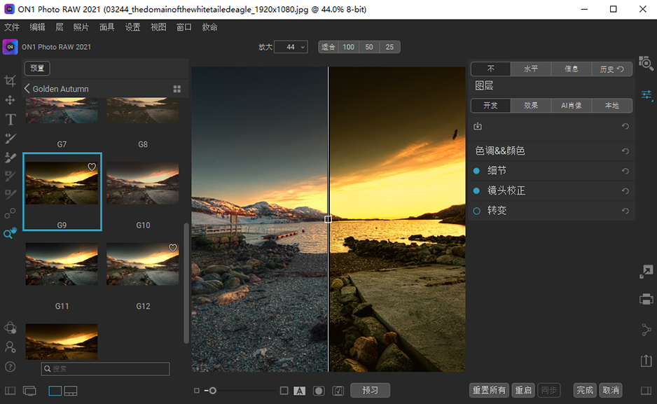 ON1 Photo RAW 2021.1是一款专业化的摄影后期处理软件,能使工作流程优雅,强大而又简单,为专业摄影师拍摄剪辑带来帮助,这里有后期所需一切工具,并采用了全新开发设计的RAW处理引擎,完美兼容各类主流计算机系统,全新滤镜和人工智能AI功能等你来体验,更有超多自定义模式支持设置,更适用于现在的传感器和图形处理器,再通过与现有工具结合,将会使其成为现今世界上速度最快,最灵活且最易用的RAW文件处理软件。