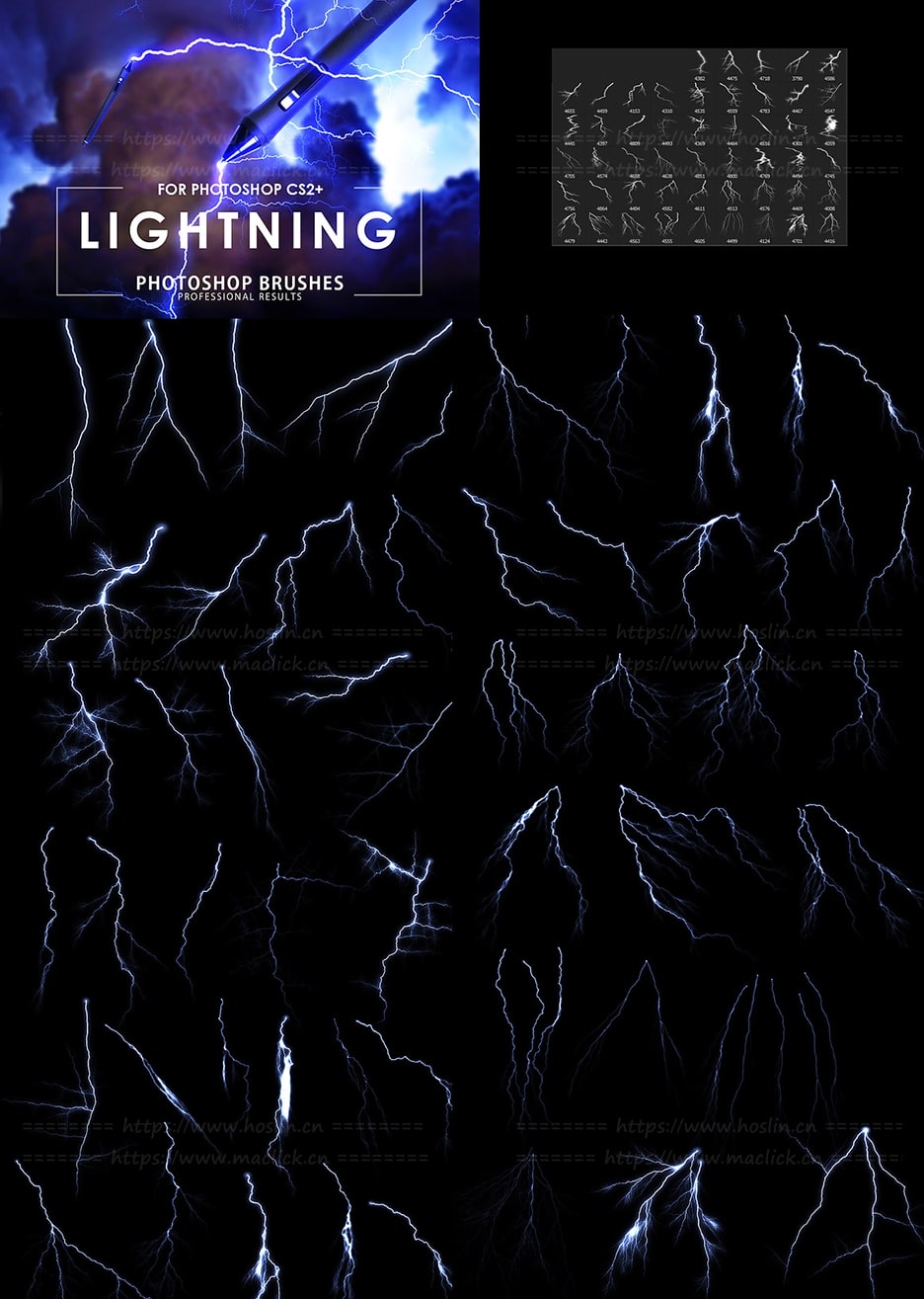 50支闪电Photoshop笔刷 – 单独下载:【PS笔刷】50支雷击闪电雷电效果Photoshop笔刷 50 Lightning Photoshop Brushes