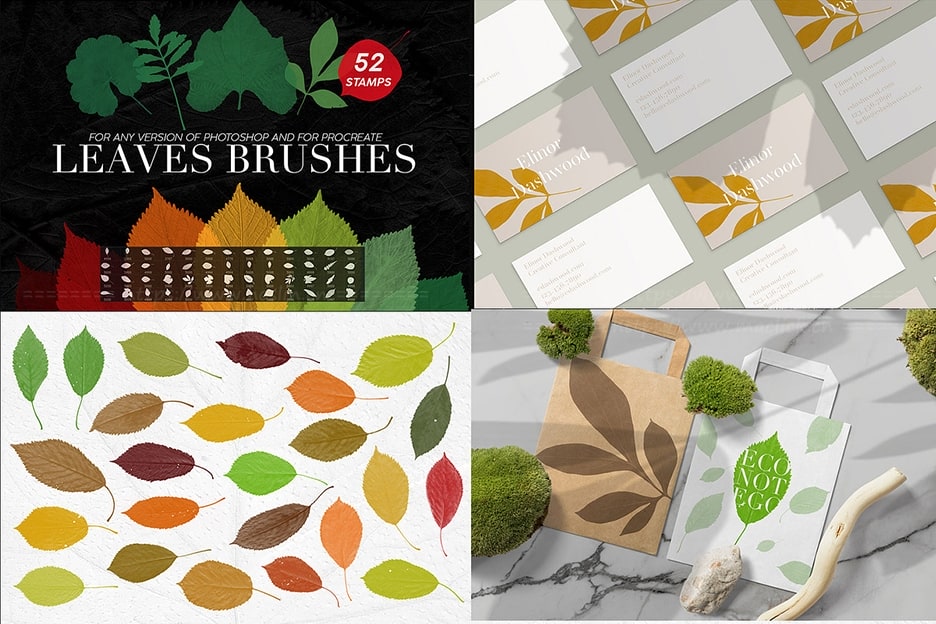 52支树叶形状photoshop印章笔刷 – 单独下载:【PS笔刷】52支高分辨率新鲜树叶形状PS笔刷 52 Leaves photoshop Stamp Brushes