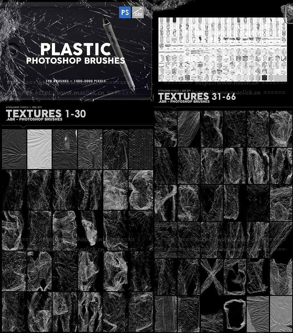 198个塑料薄膜效果PS笔刷 – 单独下载:【PS笔刷】198支透明塑料薄膜效果PS特效笔刷 198 Plastic Photoshop Brushes