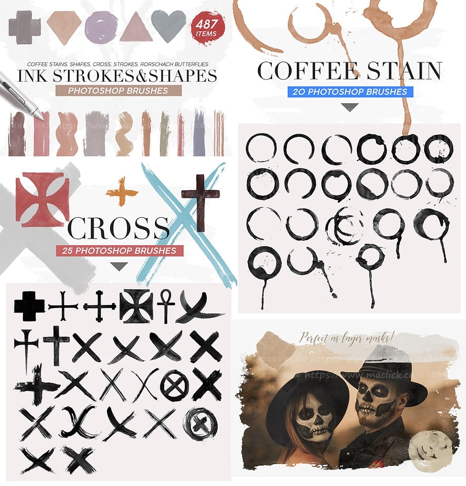 487支水墨笔触形状Photoshop笔刷 – 单独下载:【PS笔刷】487支水墨笔触形状Photoshop笔刷 487 Ink Shapes Photoshop Brushes