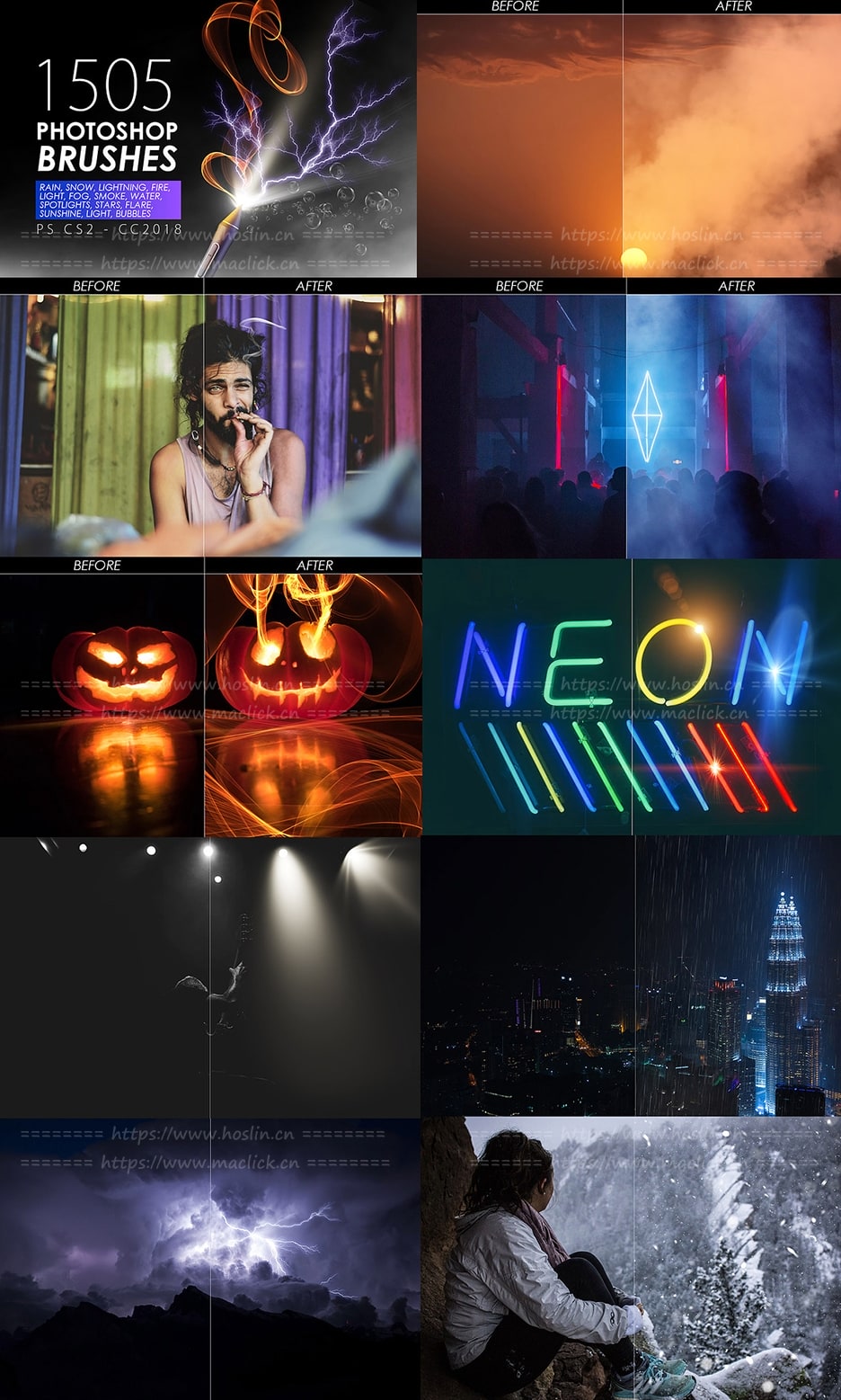 1505支特效笔刷集合包 – 单独下载:【PS笔刷】1505种雨雪火焰光线烟雾气泡灯光闪电特效PS笔刷合集包 1505 Visual Effects Photoshop Brushes