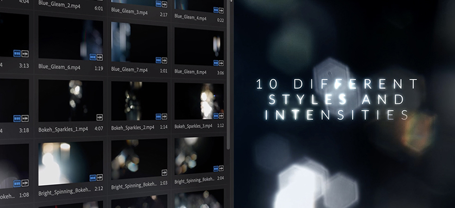 它包括各种强度和样式的叠加效果。这意味着不同颜色的光,不同大小的散景以及不同元素之间的闪光量也不同。对于许多不同类型的项目,这套视频素材将非常实用。