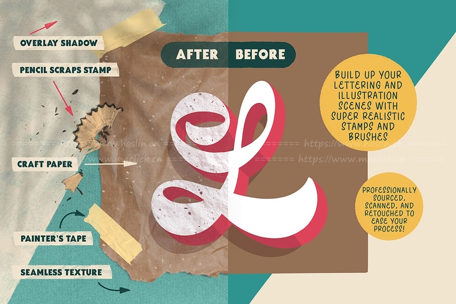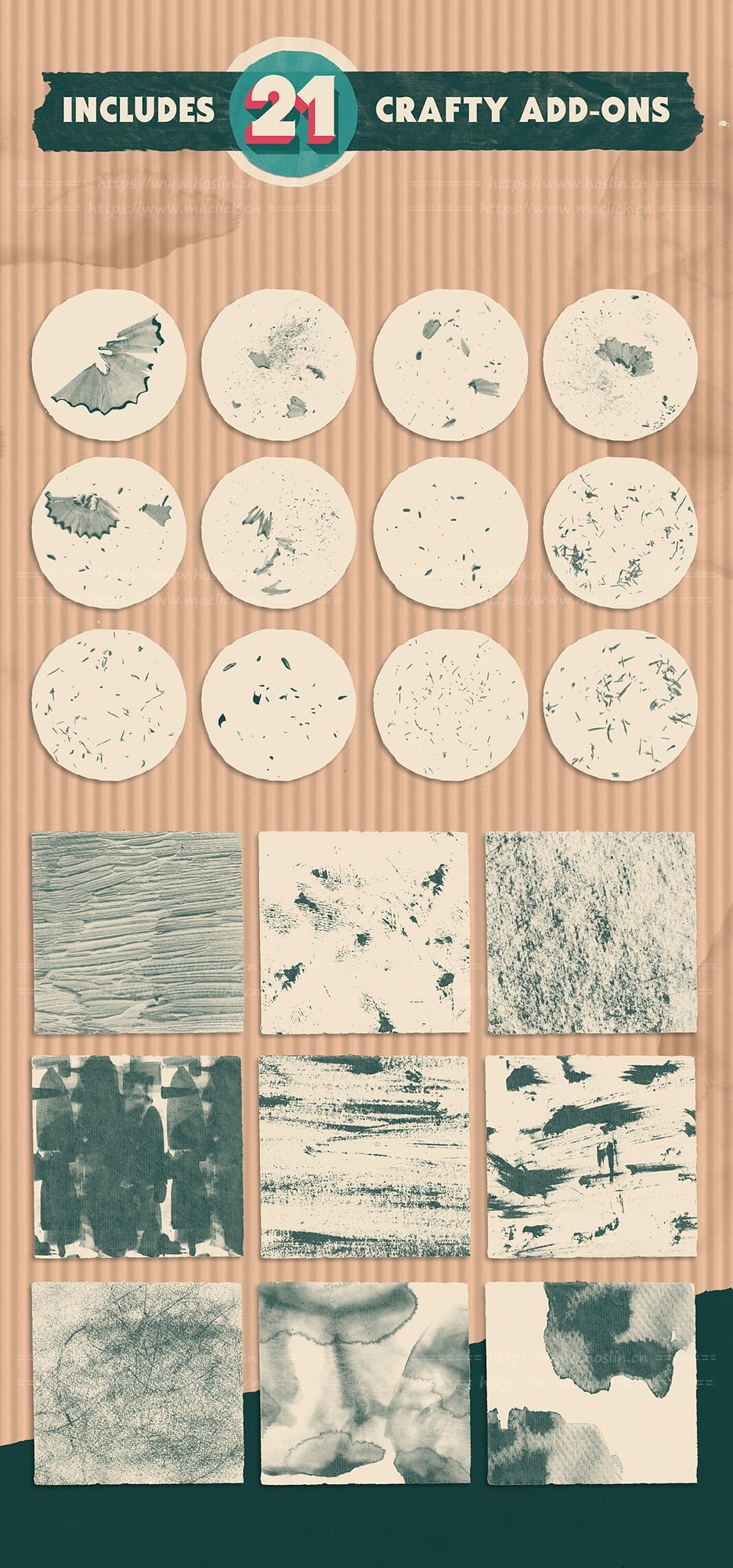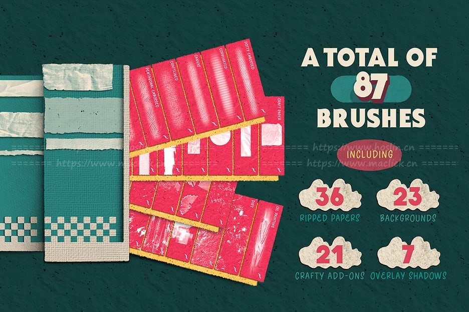 我们还提供了36张撕纸,包括21种巧妙的附件(包括墨水纹理和铅笔屑),可帮助您立即构建自己的构图,让您的创作无限的可能性!