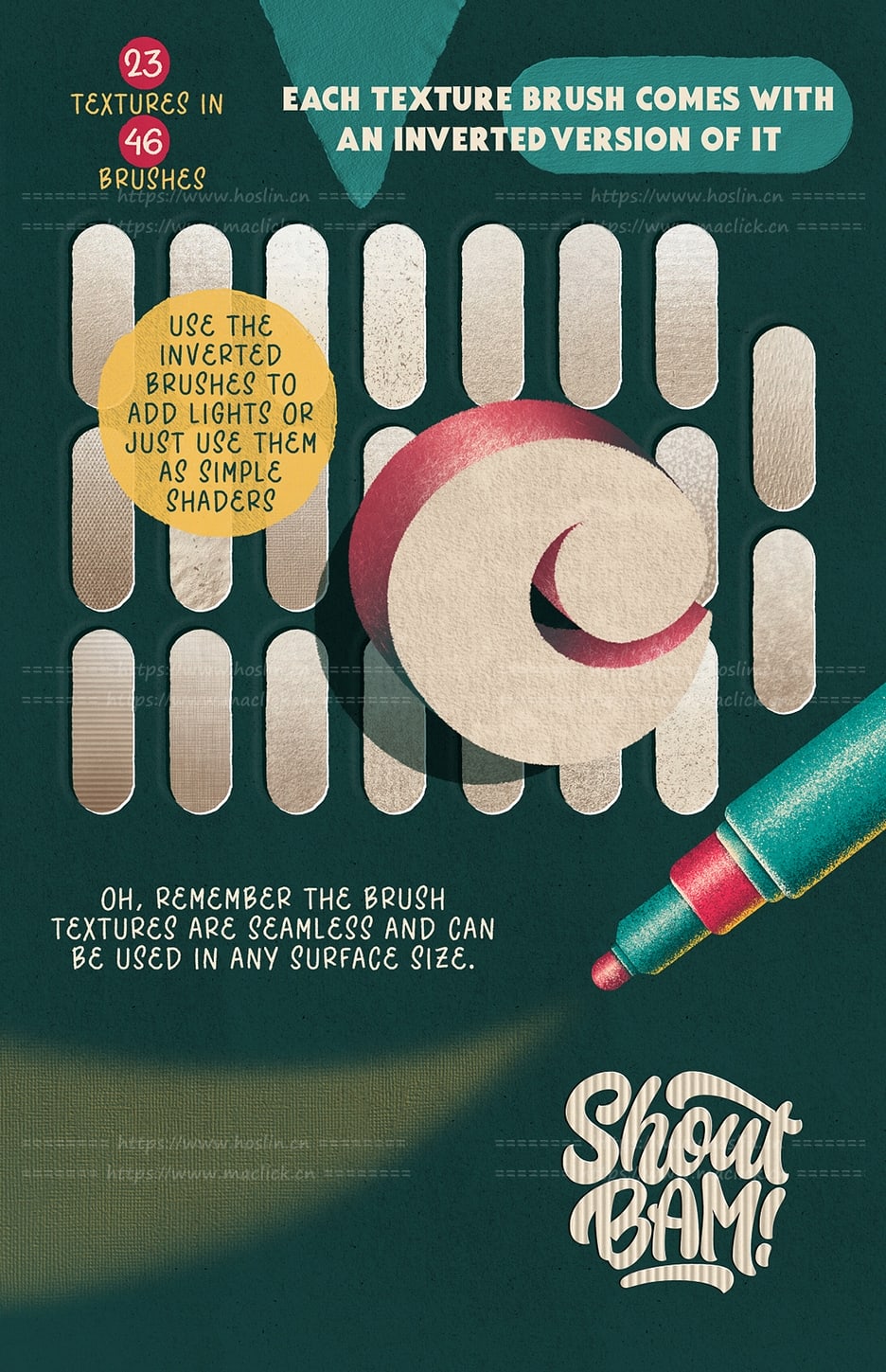 这套工具包含超过87种画笔,可让您使用超逼真的图章和画笔来构建您的刻字和插图场景。它们经过专业来源,扫描和修饰,以简化您的过程。包含适合所有绘画风格的无缝帆布刷。您将能够以任何所需的表面大小和任何颜色使用纹理。