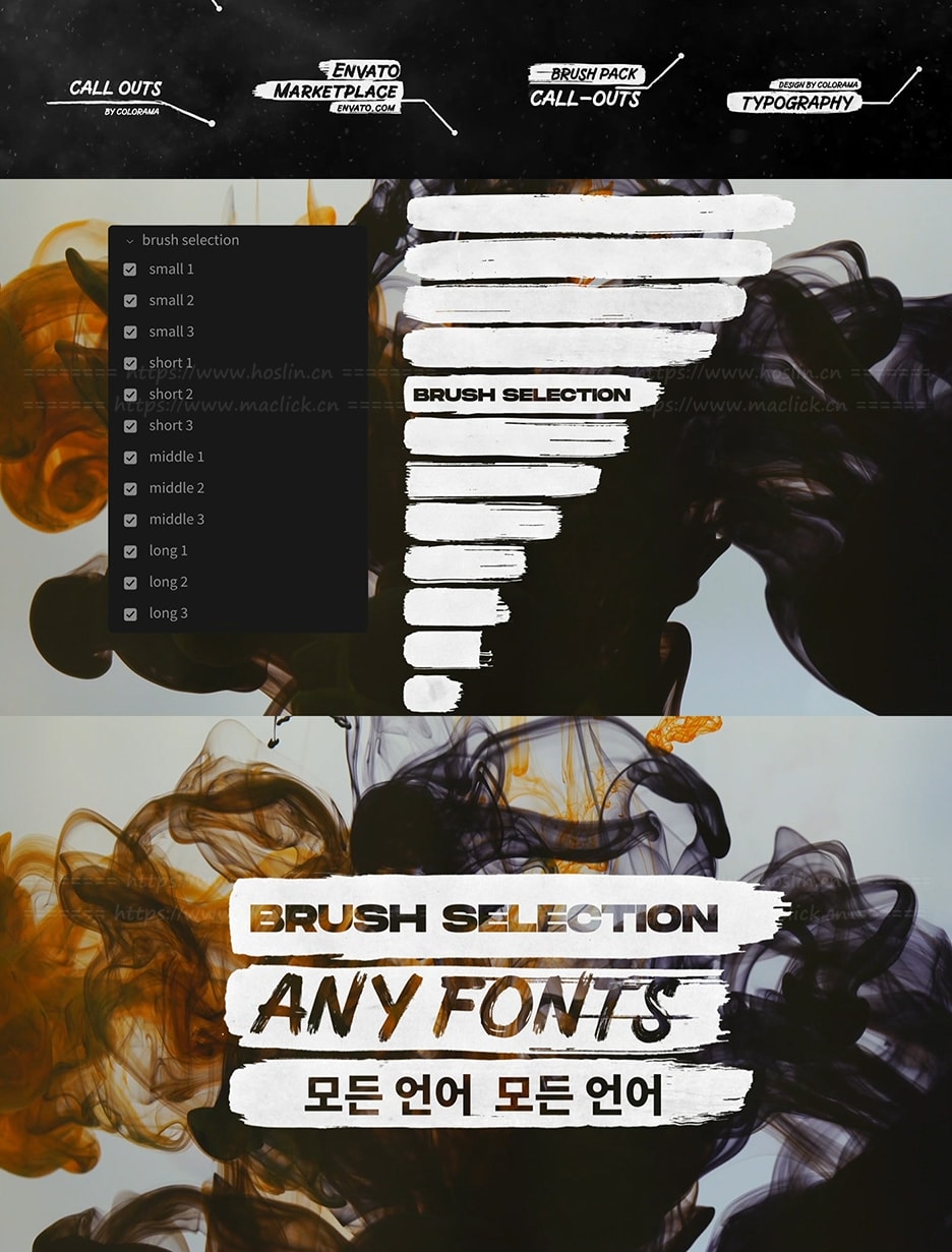 Brush Titles是一个完美的版式集合,可为各种受众创建任何类型的幻灯片放映,视频开场,社交媒体故事或标题序列。60个笔刷排版场景将使您的视频制作再上一个台阶。它非常易于使用,任何经验的用户都可以做到这一点-从刚开始创建视频博客的人到重视时间的视频编辑专业人员。