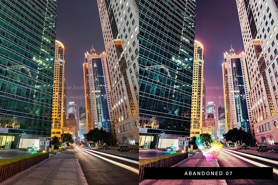 • 10个废弃的预设 – 深色的黑色阴影突显了霓虹灯和灯光。