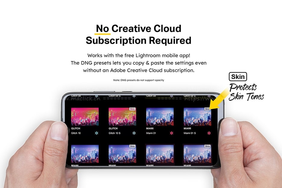 • 10个迈阿密预设 – 紫色,蓝绿色和黄色为Cyber​​punk外观赋予了新的外观。