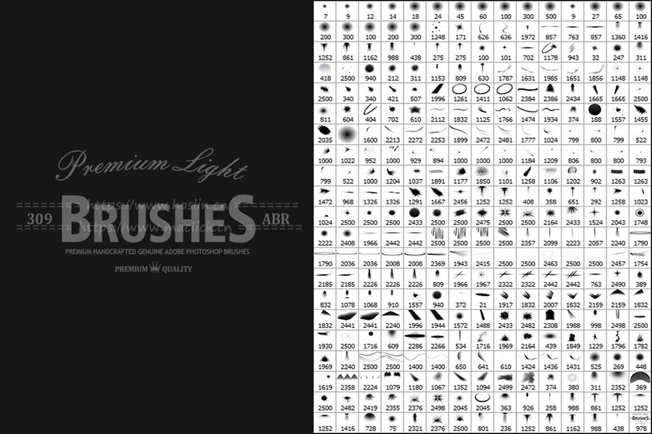 关于产品:309+16 支优质光效Adobe Photoshop笔刷。画笔套装是为摄影师和图形设计师开发的。所有笔刷均经过精心设计,以确保质量和性能。这些优秀的笔刷都是为频繁使用项目而开发的。对于设计专业人士或业余爱好者来说,这是一个很好的组合。