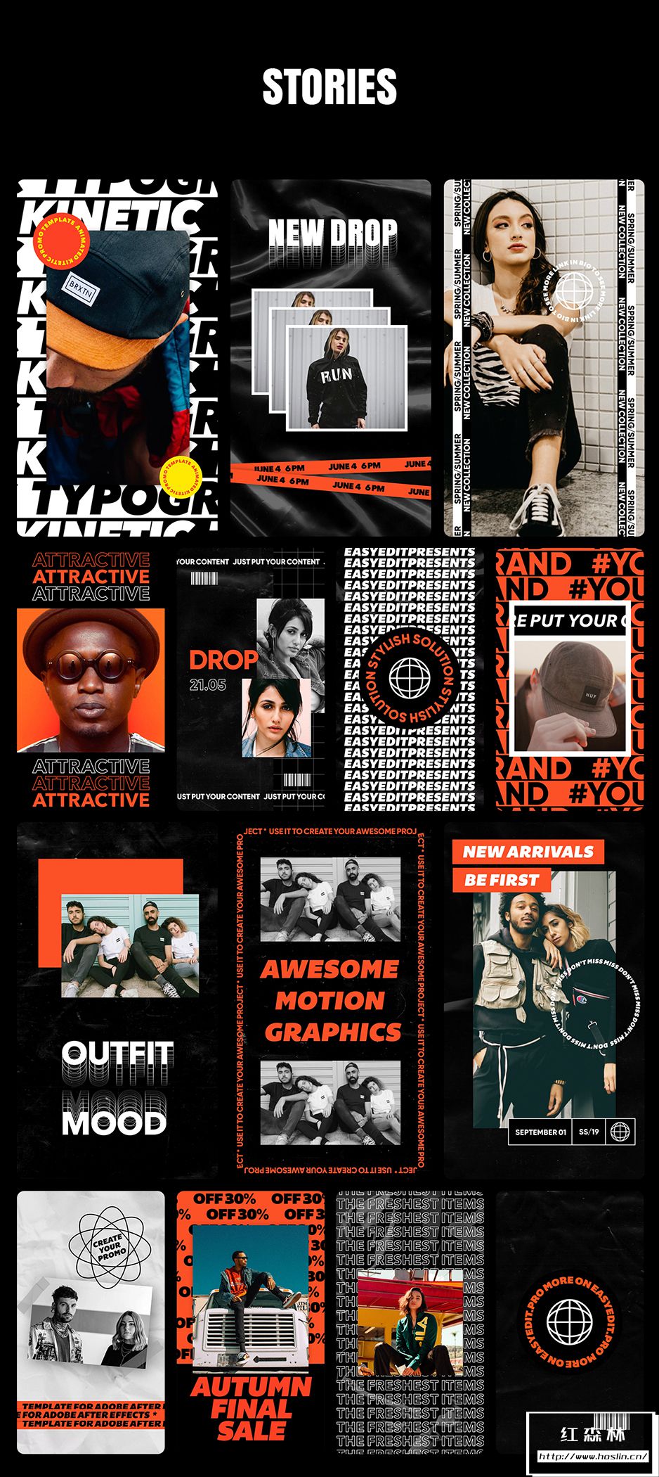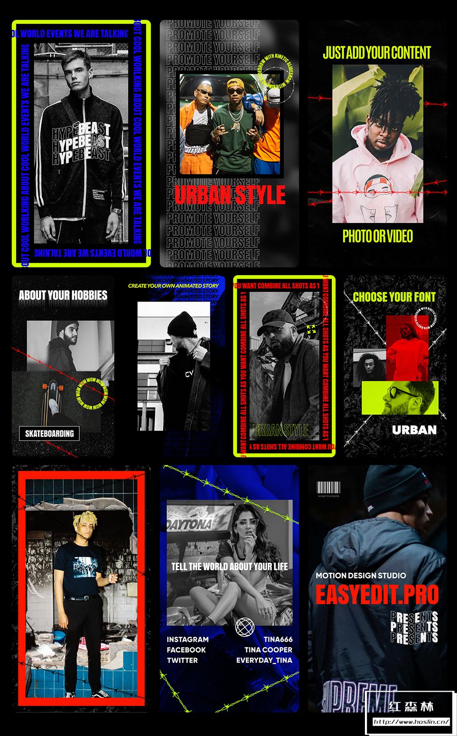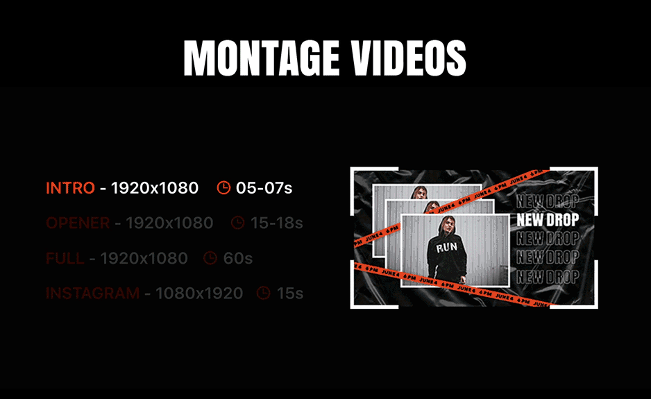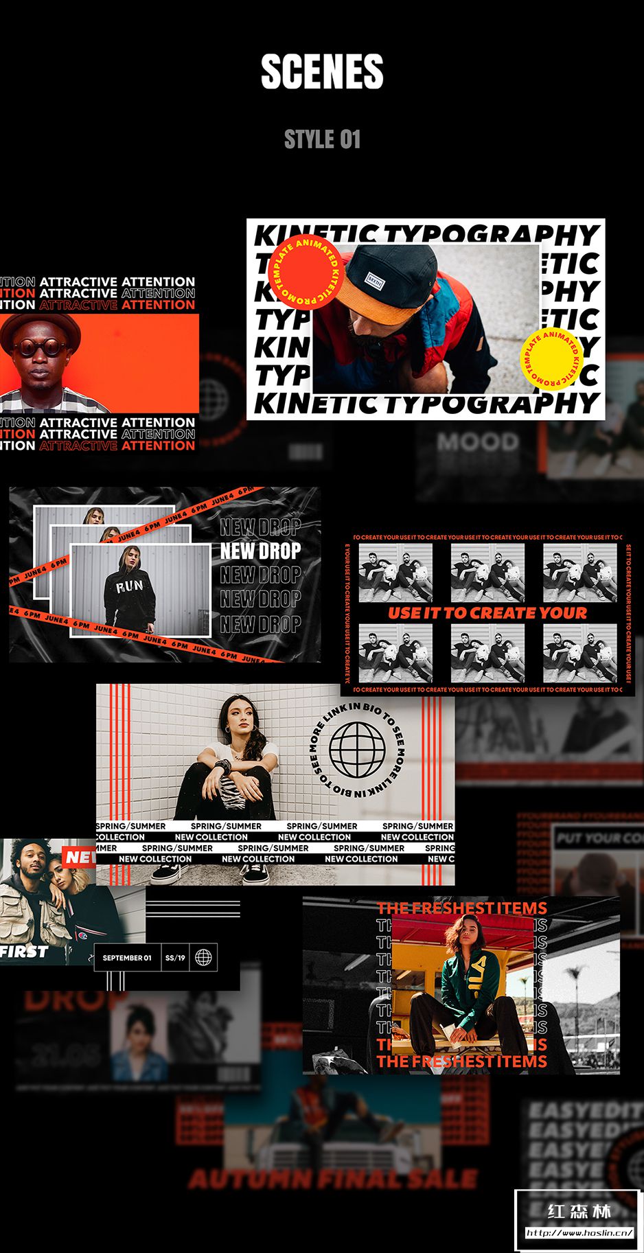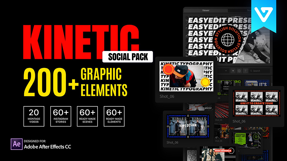 您还可以组合任何镜头来创建自己的视频,也可以使用预制的效果之一。包中有20个内容:简介,开场白,幻灯片,竖屏宣传等。这是满足您所有需求的最时尚的解决方案。