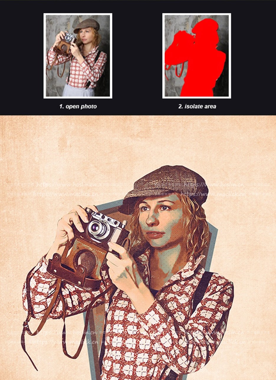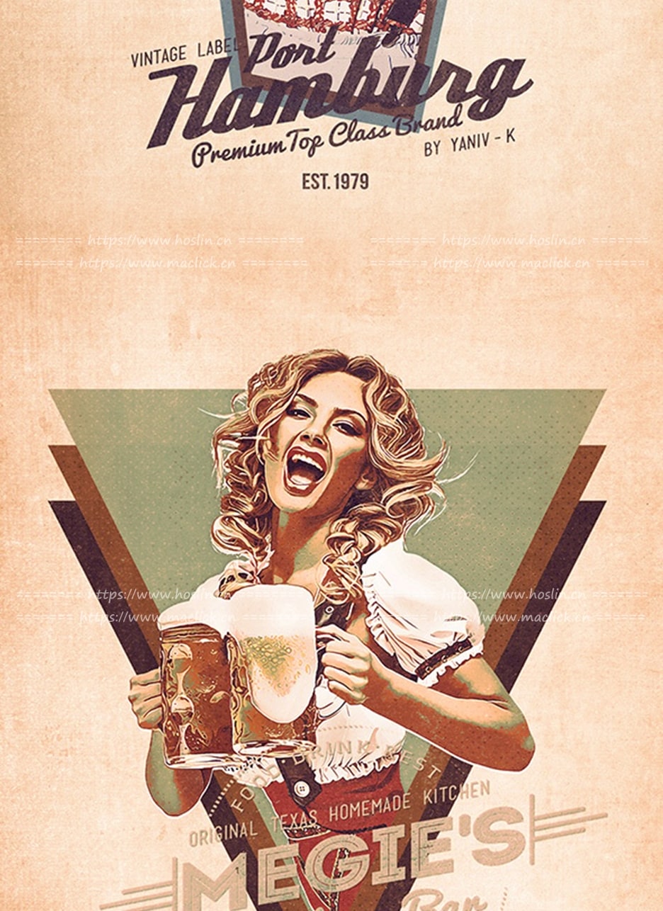Retro Poster – Photoshop Action 是一款高效的将普通照片转换为复古广告海报效果的PS动作,复古海报效果PS动作能够快速将您的照片转换为老旧复古回忆色彩。此动作使用简单,只需在PS中导入图片,在background图层上方新建一个空白图层并命名为“brush”,使用画笔工具涂抹出您想要施加效果的区域,然后执行动作,很快您将看到效果。