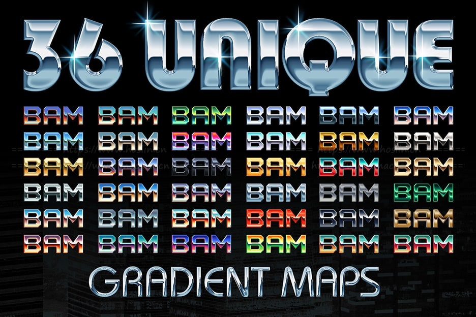 这是一个用于Affinity Photo / Design / Publisher的工具包,包含36个单独的渐变映射预设,10种图层样式以与地图结合使用以及10种独特的发光效果。