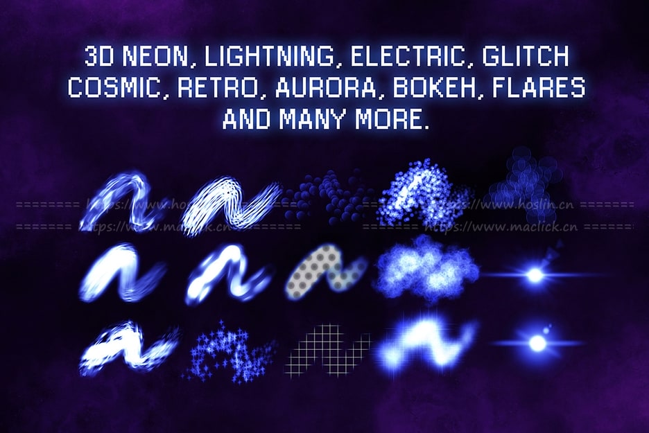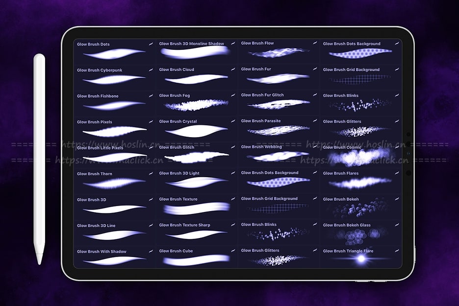 包括30+发光笔刷和色板/调色板。