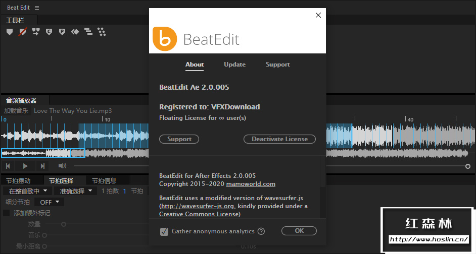 - 节拍检测: BeatEdit具有由波尔图(葡萄牙)和维多利亚(加拿大)的大学开发的高精度节拍检测器。这款节拍跟踪器超越了简单的峰值检测,它结合了多种方法和大量专业知识,即使在节拍不明显的歌曲中也可以获得准确的结果。