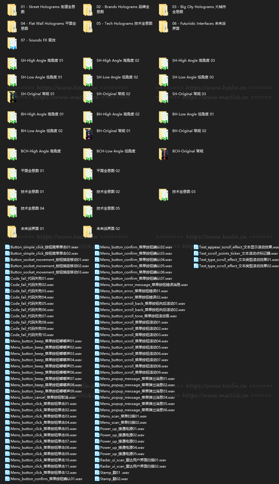 - 03 – Big City Holograms 大城市全息图 5种都有常规/高角度/低角度三种模式 共15个视频