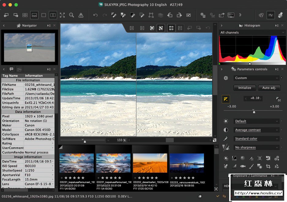 SILKYPIX JPEG Photography 10是最好的JPEG照片调整软件,它是一种高效的图像增强调整工具,可以为博客和SNS完成美观的照片,以及打印和完成不受影响的作品。“复合”功能和总共66种预设使创建新的照片表达成为可能。此外,ISL专有技术可帮助您高质量地调整JPEG图像,并进行大量调整,例如能够校正指定区域的部分校正工具,这对您的创作提供了有力支持。