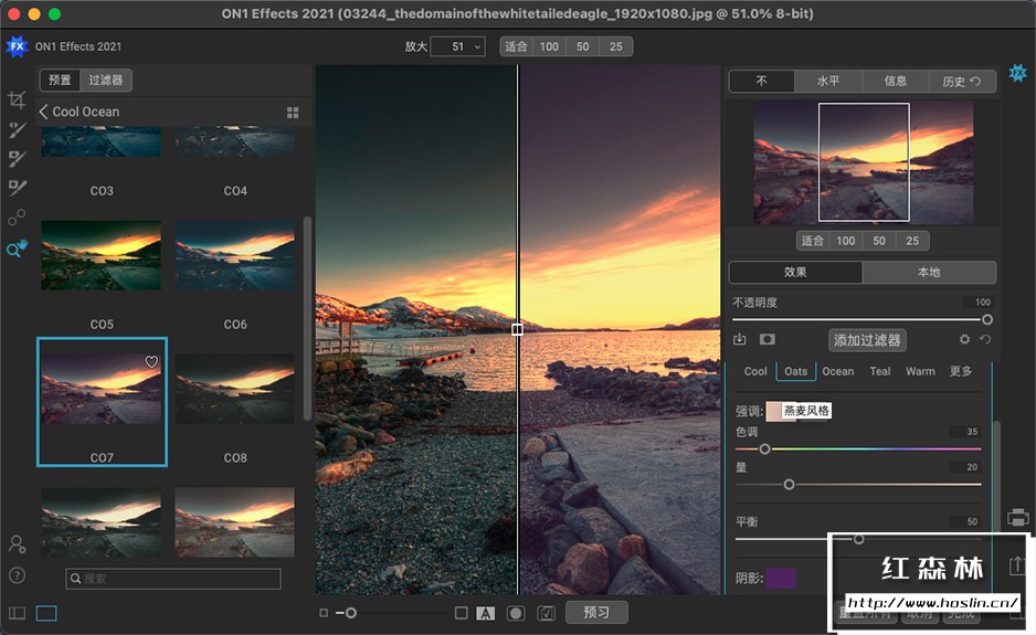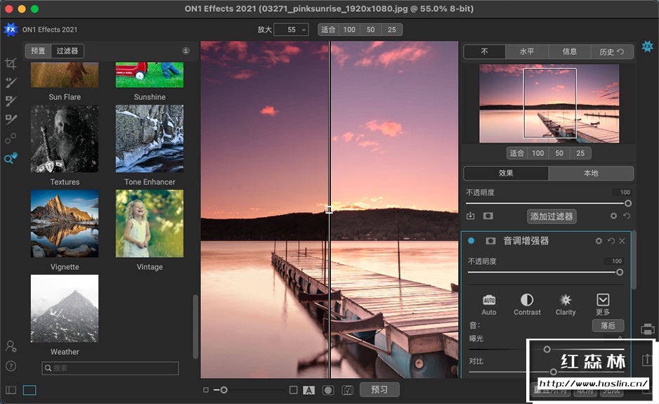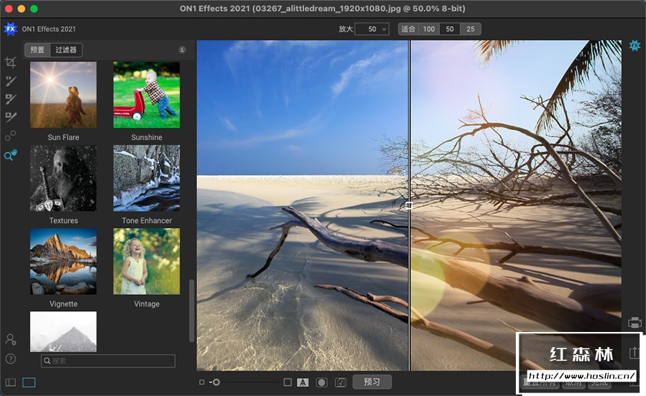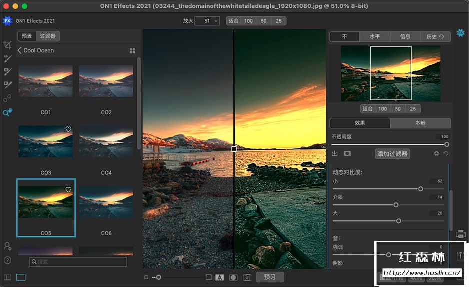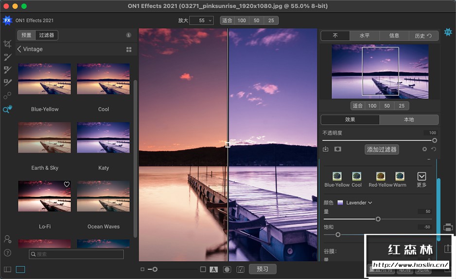 ON1 Effects 2021.5是由ON1公司推出的一款功能强大的照片滤镜调色软件,该软件采用最新的一代的RAW档高速处理引擎,可以完美兼容目前主流计算机架构,并且软件内置一个超大特效滤镜库,里面包含了各式各样的预设、滤镜、LUT、纹理、边框等,例如B&W、HDR外观、动态对比度、镜头模糊(倾斜移位)、发光、胶片外观、分割色调等,你知道的和不知道的这里全都有。