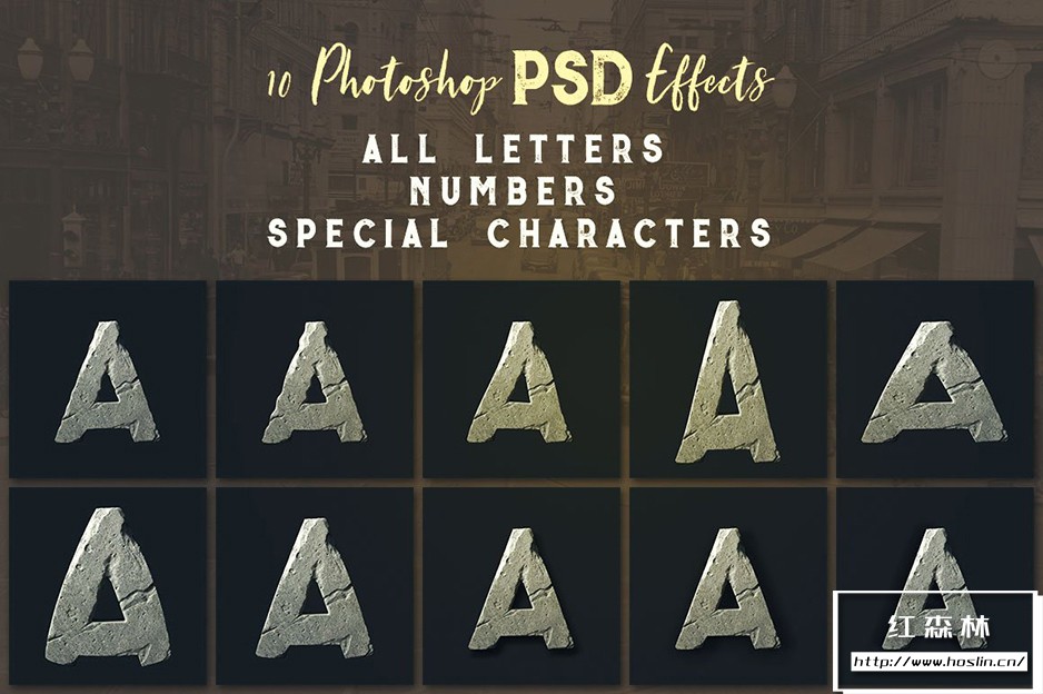 - 具有这些字母的10种效果的分层Photoshop PSD文件-具有智能对象