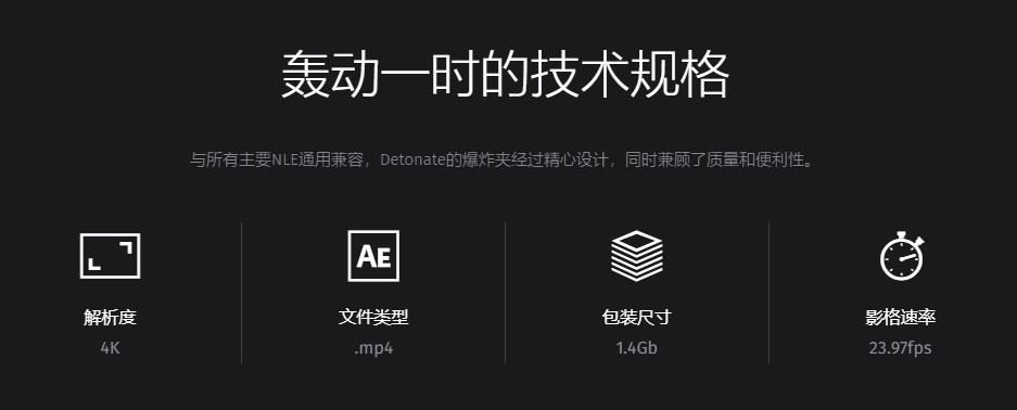 共59个由RED摄像机拍摄的火焰爆炸4K视频素材,可用于用于特效合成;分辨率:3840×2160,4K高清;无透明通道(可修改混合模式去黑底透明叠加使用)。还提供了在 AE PR FCPX 里如何使用的视频教程。