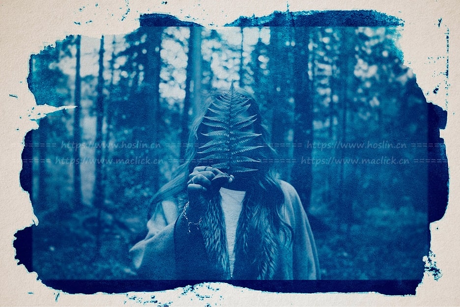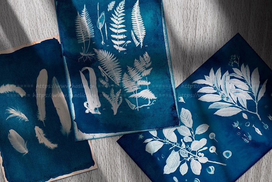 关于蓝晒法:Cyanotype – 蓝晒印相工艺,该工艺也被称为蓝晒法,是一种大家比较熟悉的古典摄影工艺。制作蓝晒印相只需要两种化学药品:柠檬酸铁铵和铁氰化钾。两种化学药水按比例配制之后,涂布在纸张或者其它介质上,借助阳光中的紫外线进行曝光,之后使用清水冲洗即可完成定影。很多初学者都把它当作第一种进行练习的古典摄影工艺。